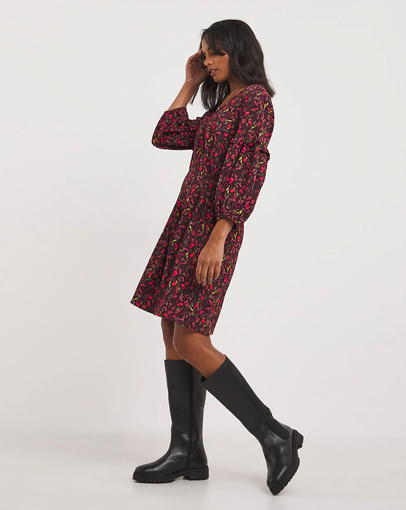 Our gently textured Bubble Crepe Dress will be sure to add a pop of colour to your wardrobe this season. Featuring 3/4 puffed sleeves with elasticated cuffs and a ruffle trim, shirred panels either side of the waist, and bust darts for a figure flattering finish. Complete with front pintuck detailing, a modern v-neck and falls to our short length.