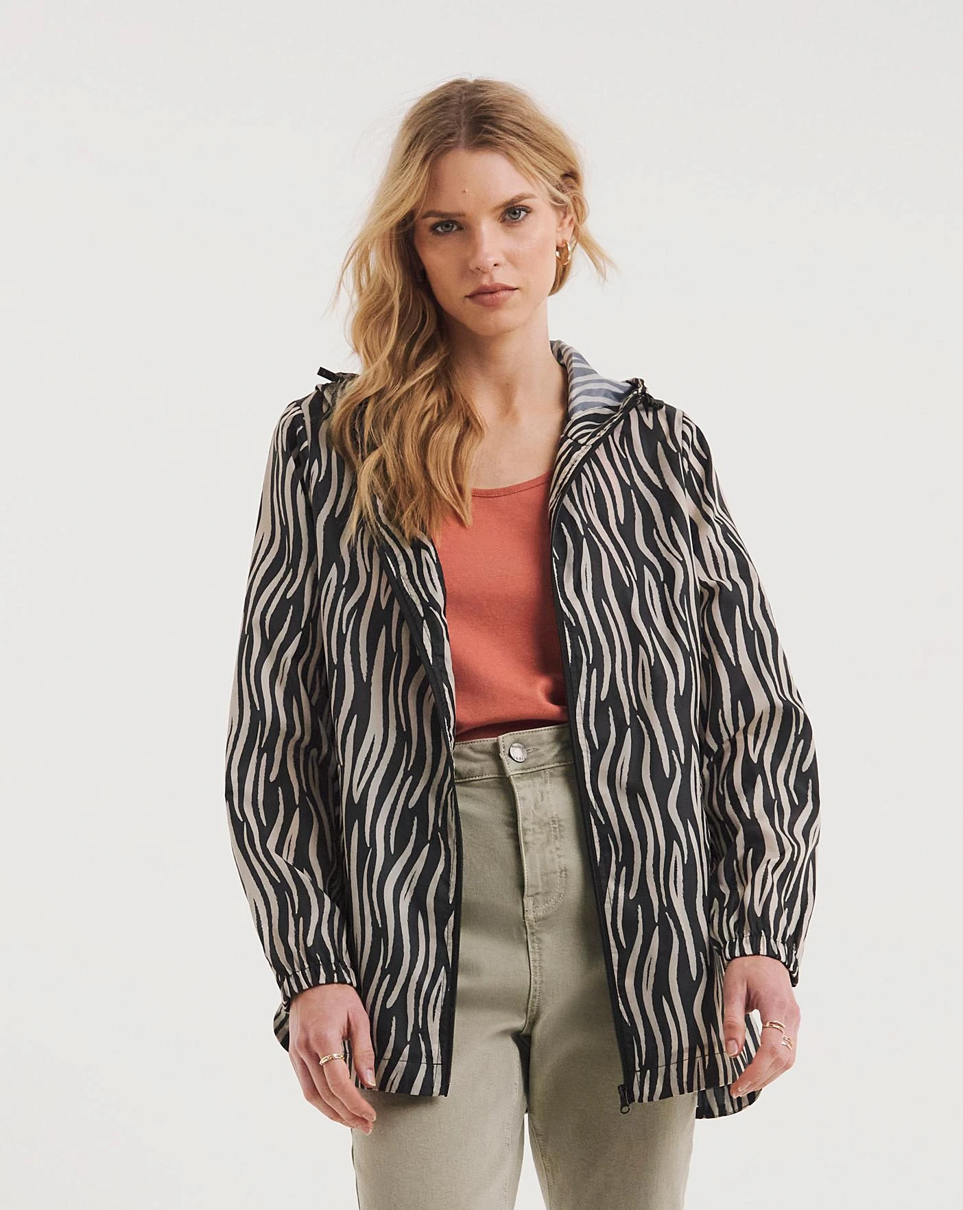 Our lightweight pac-a-mac features an adjustable hood, elasticated cuffs, side pockets and a new modern dip back hem. This handy, showerproof Jacket folds neatly into its own pocket, perfect to carry around on-the-go!