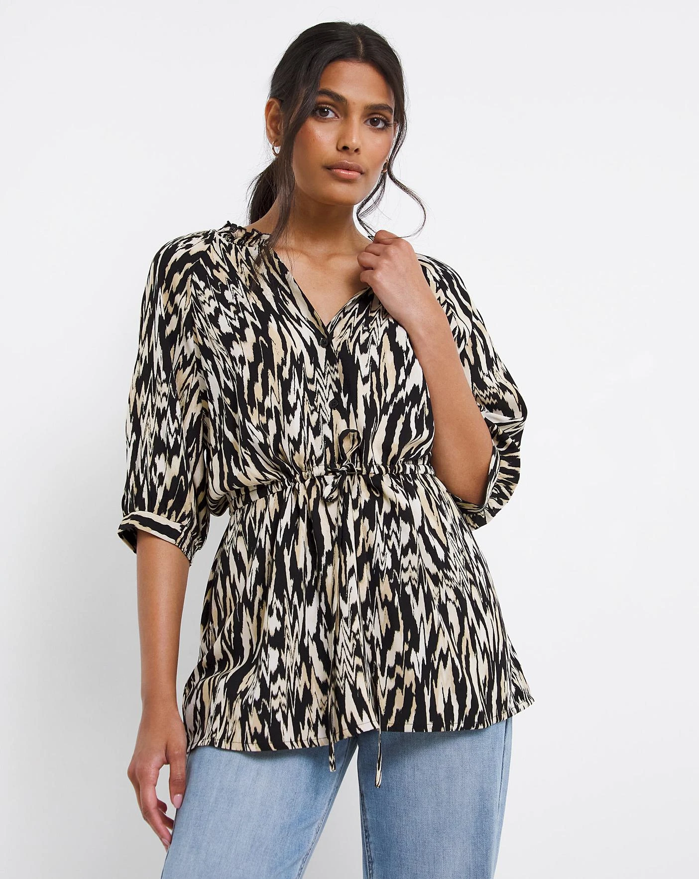 Our tie waist top comes in a flattering print and offers the perfect piece to complete your daytime look. In a relaxed fit, pair easily with jeans and flats of your choice.