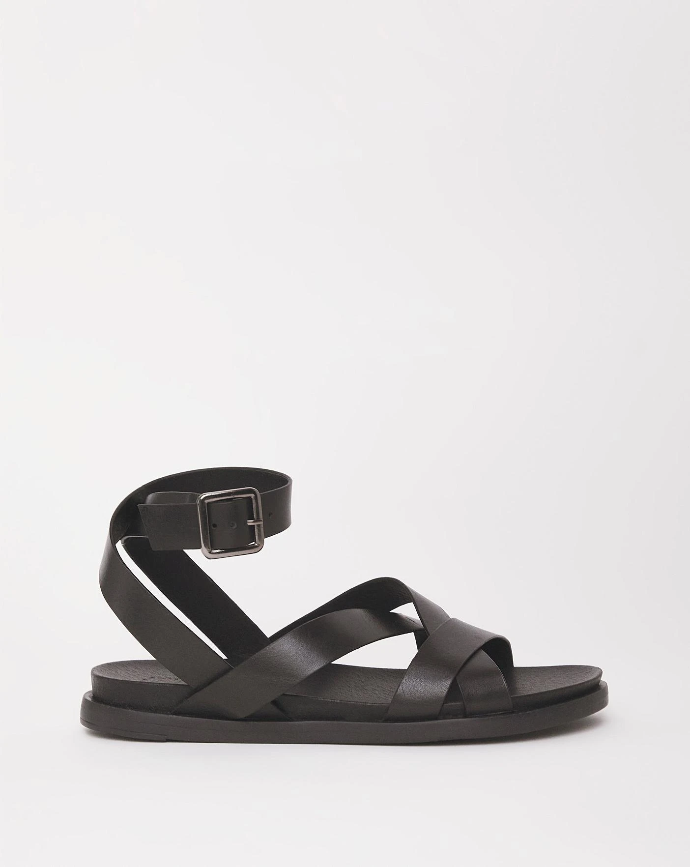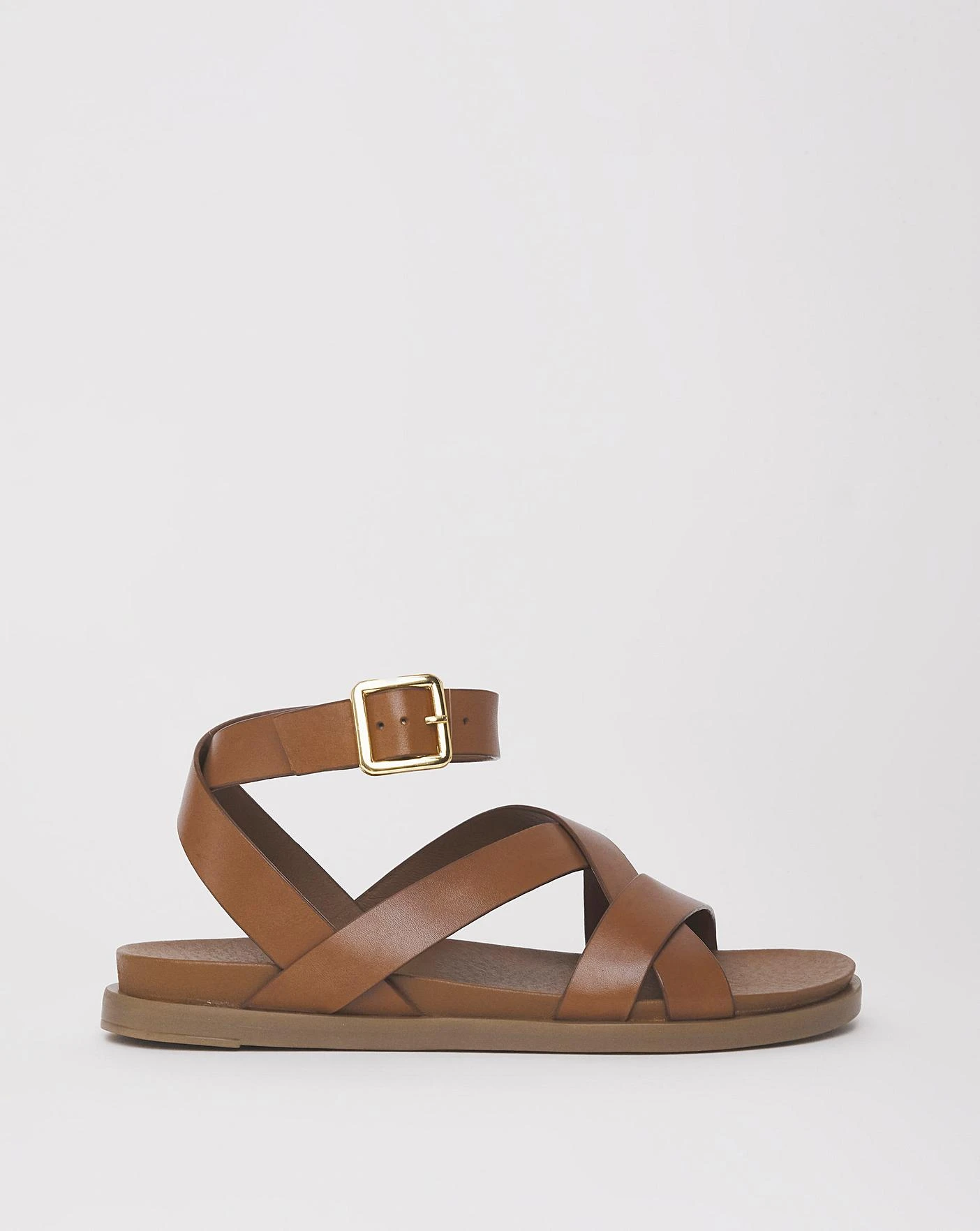 The perfect summer addition, our leather ankle strap crossover sandal is a must have to dress up or wear with a causal outfit.