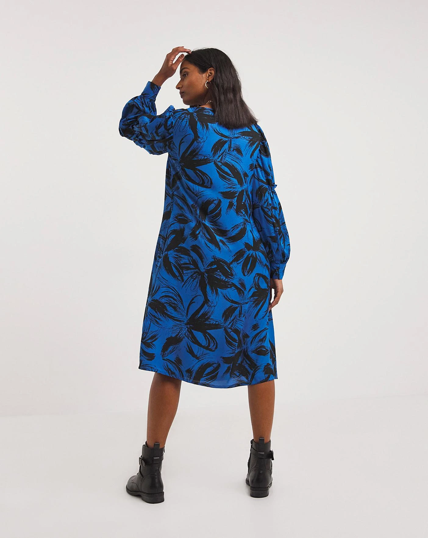 An essential staple for any day styling, this blue and black print dress features a V-neckline, balloon frill sleeves with deep cuffs adding sophistication and a detachable tie waist belt. Complete the look with your favourite pair of boots or dress up with heels.