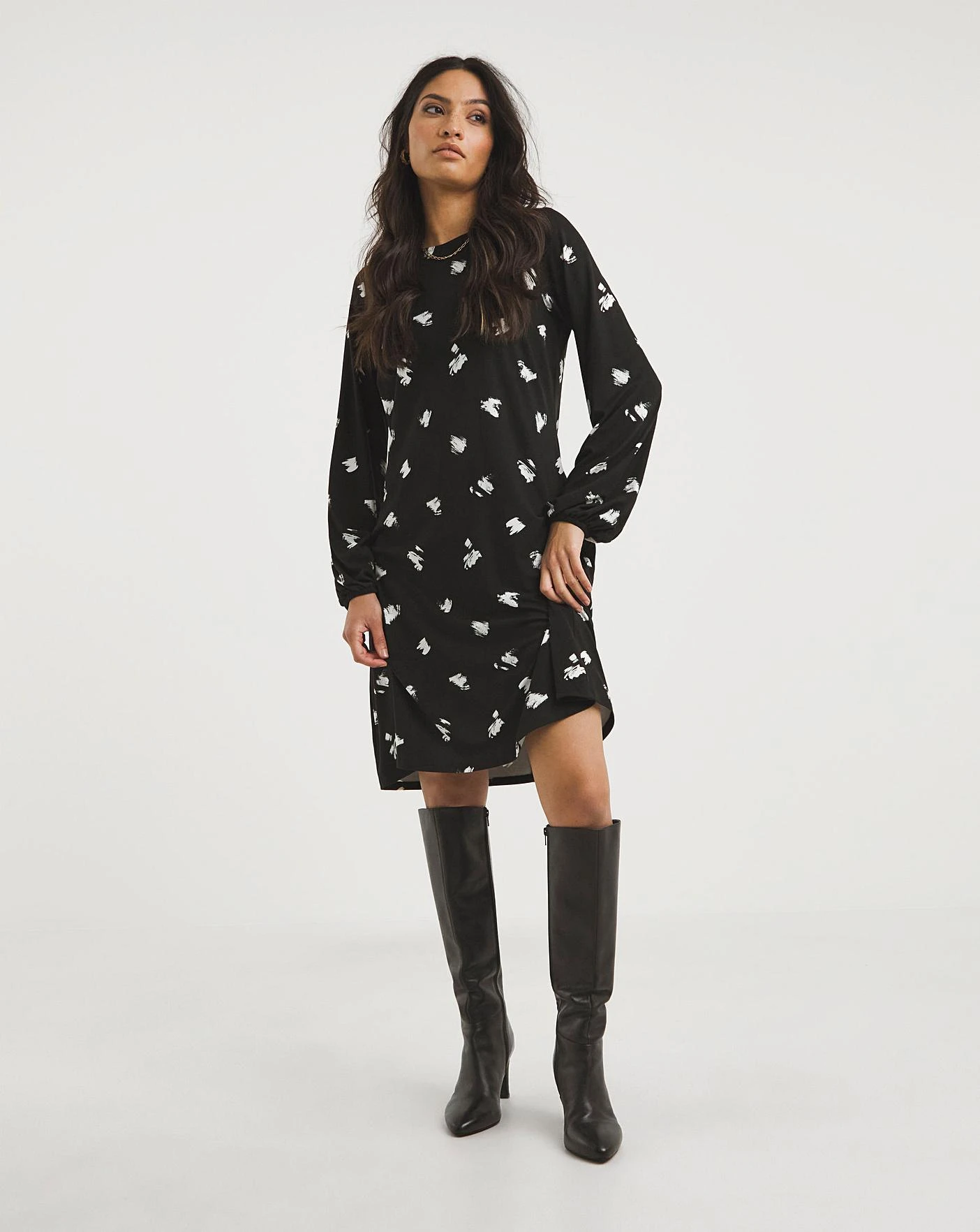 This cute, easy to wear dress is cut to a flattering swing shape features three-quarter sleeves and is made from a soft, stretchy jersey fabric. Pair with some tights and boots for the perfect christmas look.