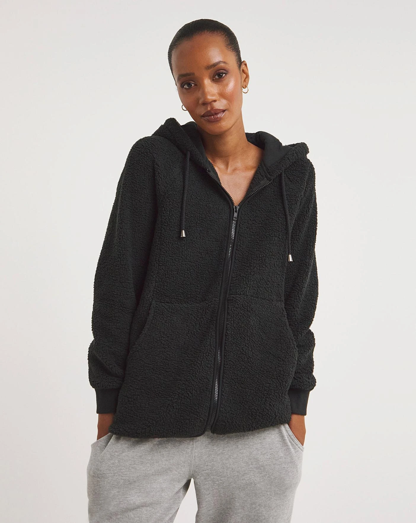 This new dip back borg hoodie is ideal for those comfy days. Relax in this lightweight, soft feel, an essential for the season. Size up for an oversized comfortable fit.