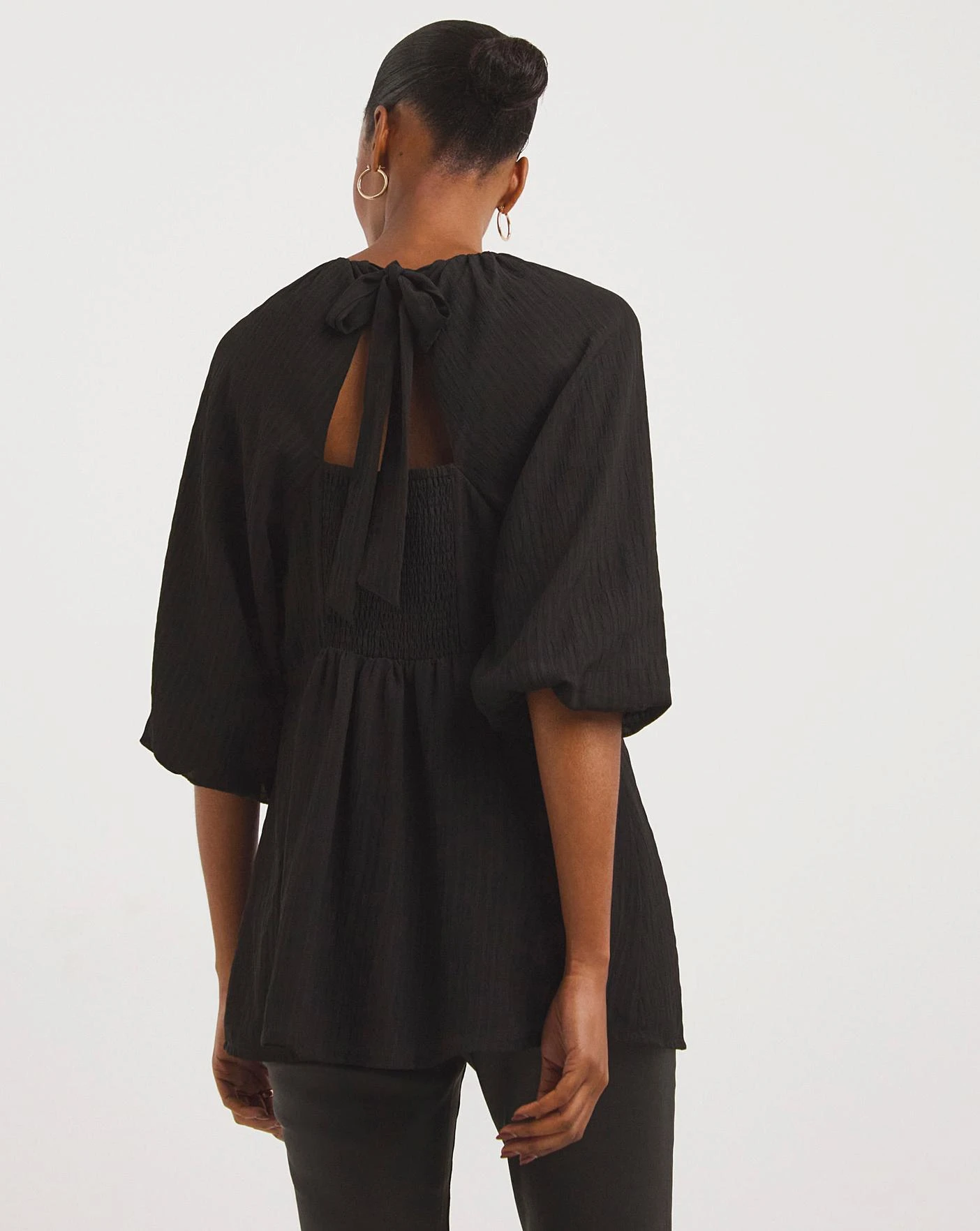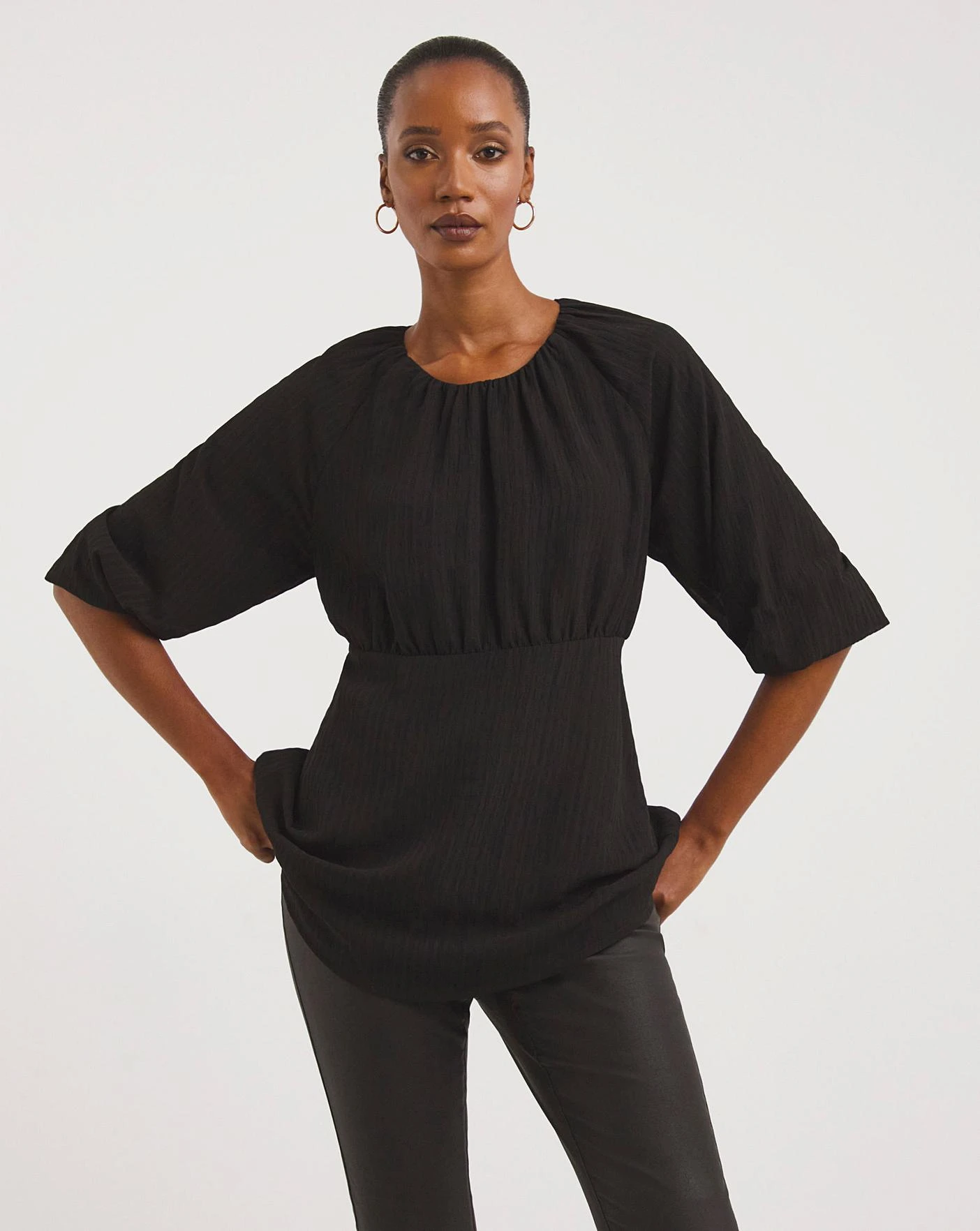 For the perfect going out look, choose our exposed back textured swing top. Great for seasonal occasions, this top can be paired perfectly with leather pants or casual trousers, completing the look with heels and bold accesssories. Please note that this top is made of a non-stretch fabric and comes in a relaxed fit.