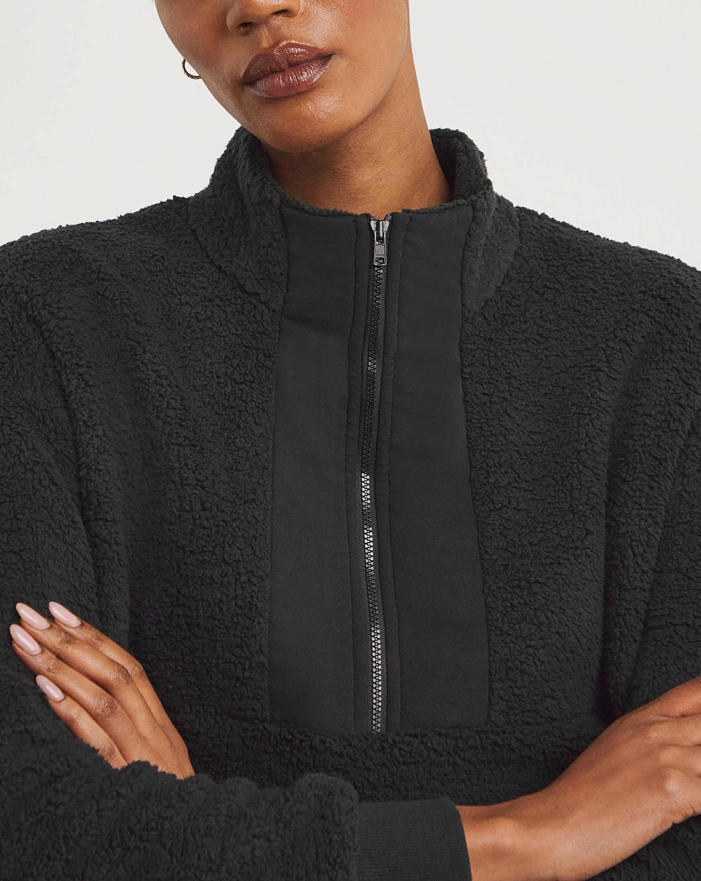 Cozy up with our new borg fleeces! This fleece features a silver zip up front and a thick fleece material. Layer over a hoodie to keep extra warm.