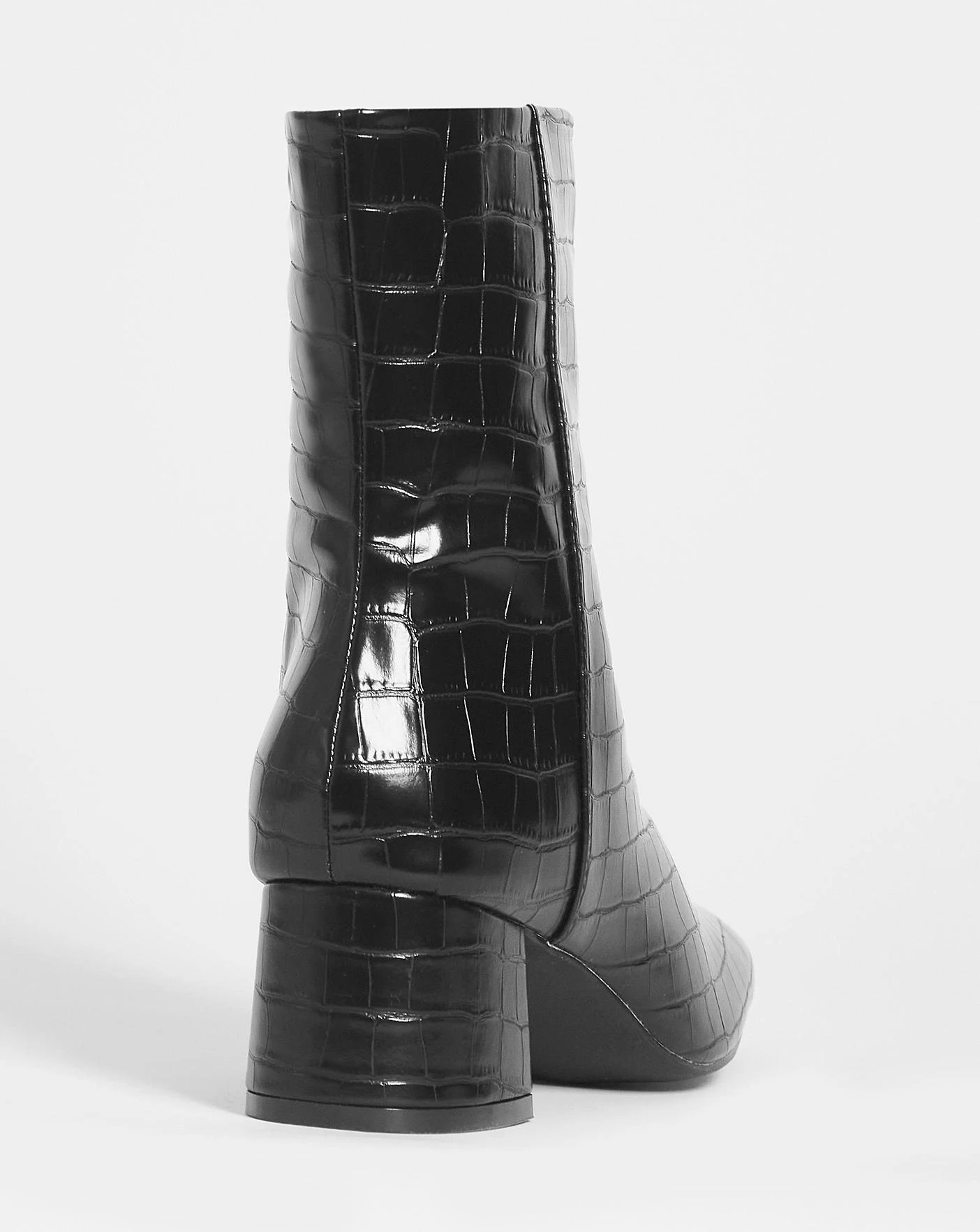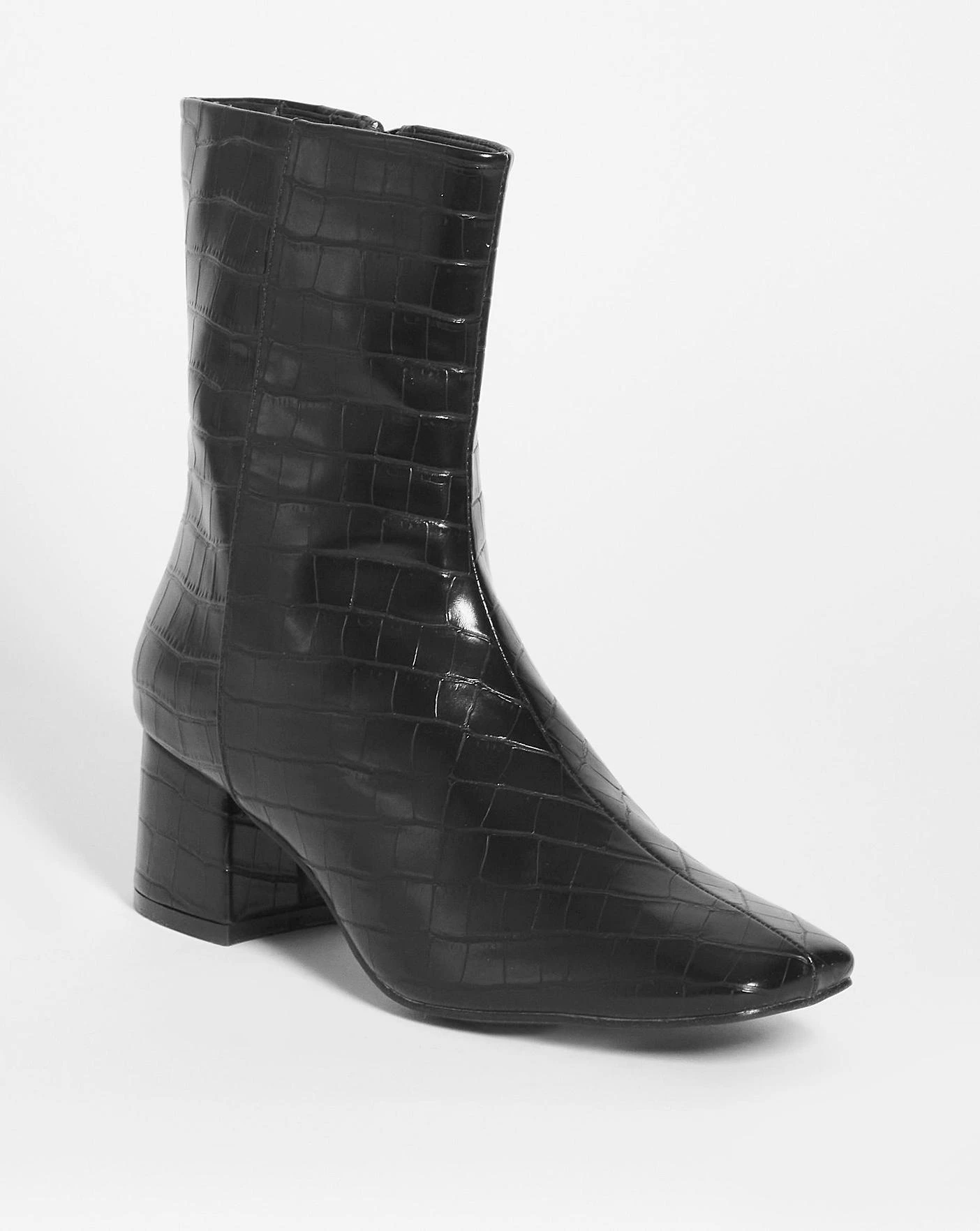 The perfect boot for a casual or dressed up style. Our new textured block heeled boot has a zip fastening and small gusset for a bit of stretch.