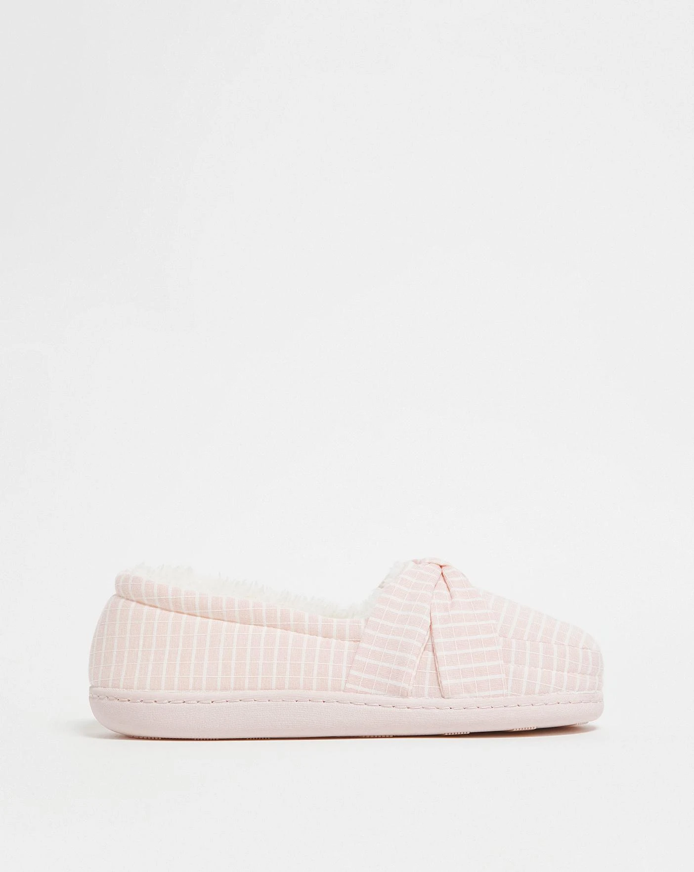 Keep your feet cosy with our soft lined slippers, designed with a check finish, bow detail and memory foam footbed for extra comfort.