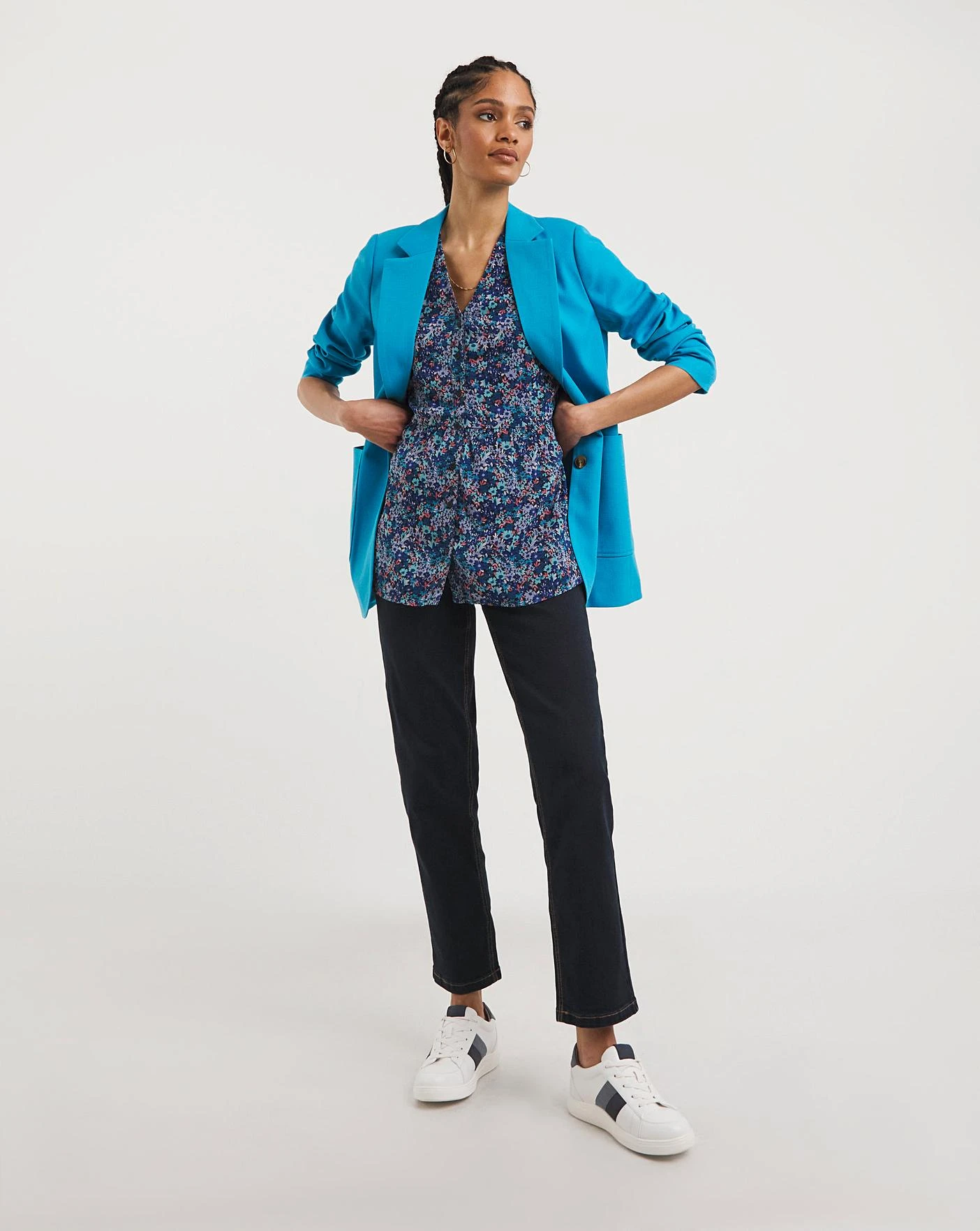 For the perfect daytime look choose our button front blouse. Featuring a v neckline and buttons up the front, this blouse can be paired easily with jeans. Please note that this top is made of a non-stretch fabric and comes in a relaxed fit.