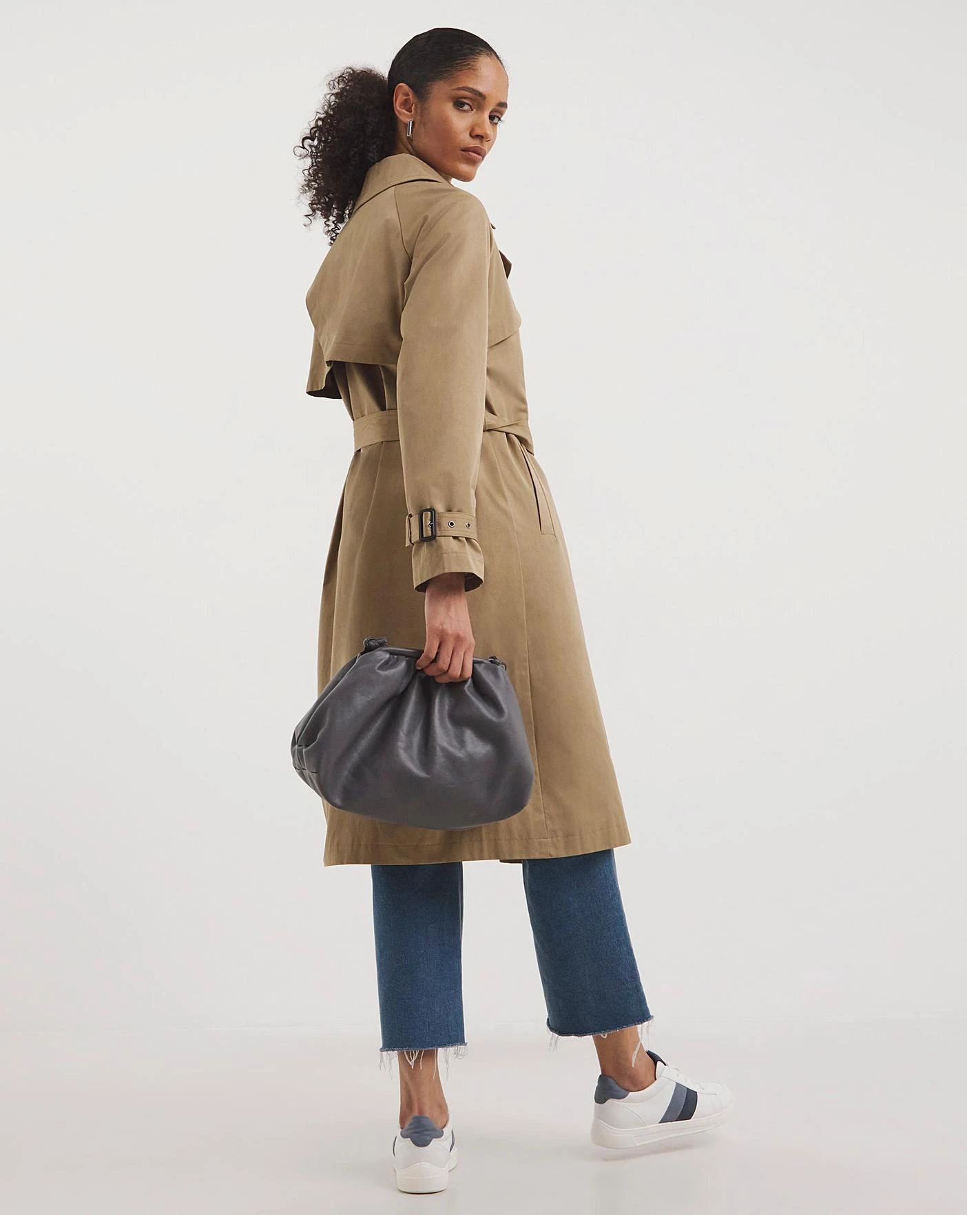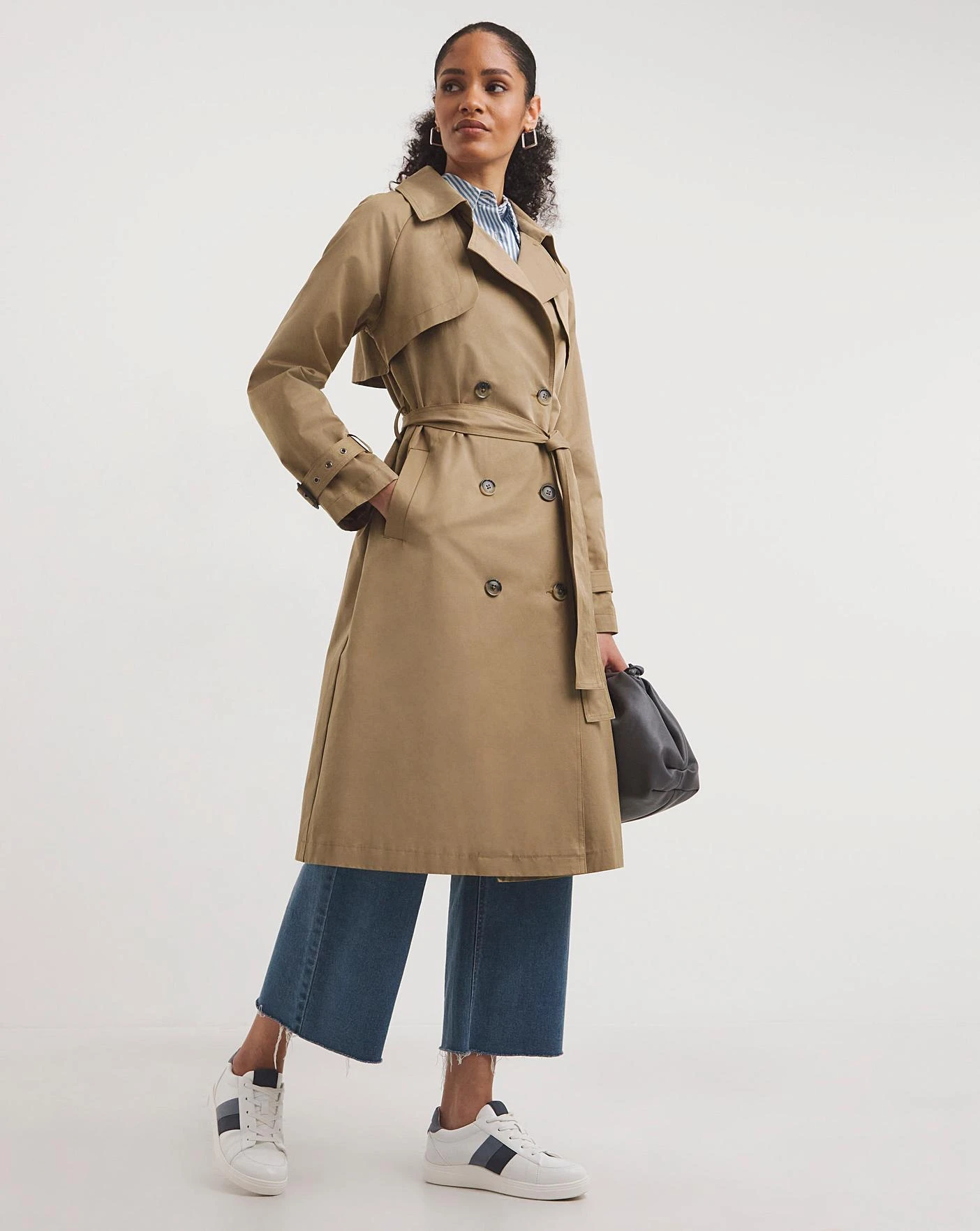 New in, our Longline Double-Breasted Trench. The classic trench coat, perfect for the transitional weather. Featuring a tie belt, adjustable cuffs, side pockets and button detailing. Throw over your favourite jeans for a sophisticated daytime look or a dress and heels for a classy evening style.