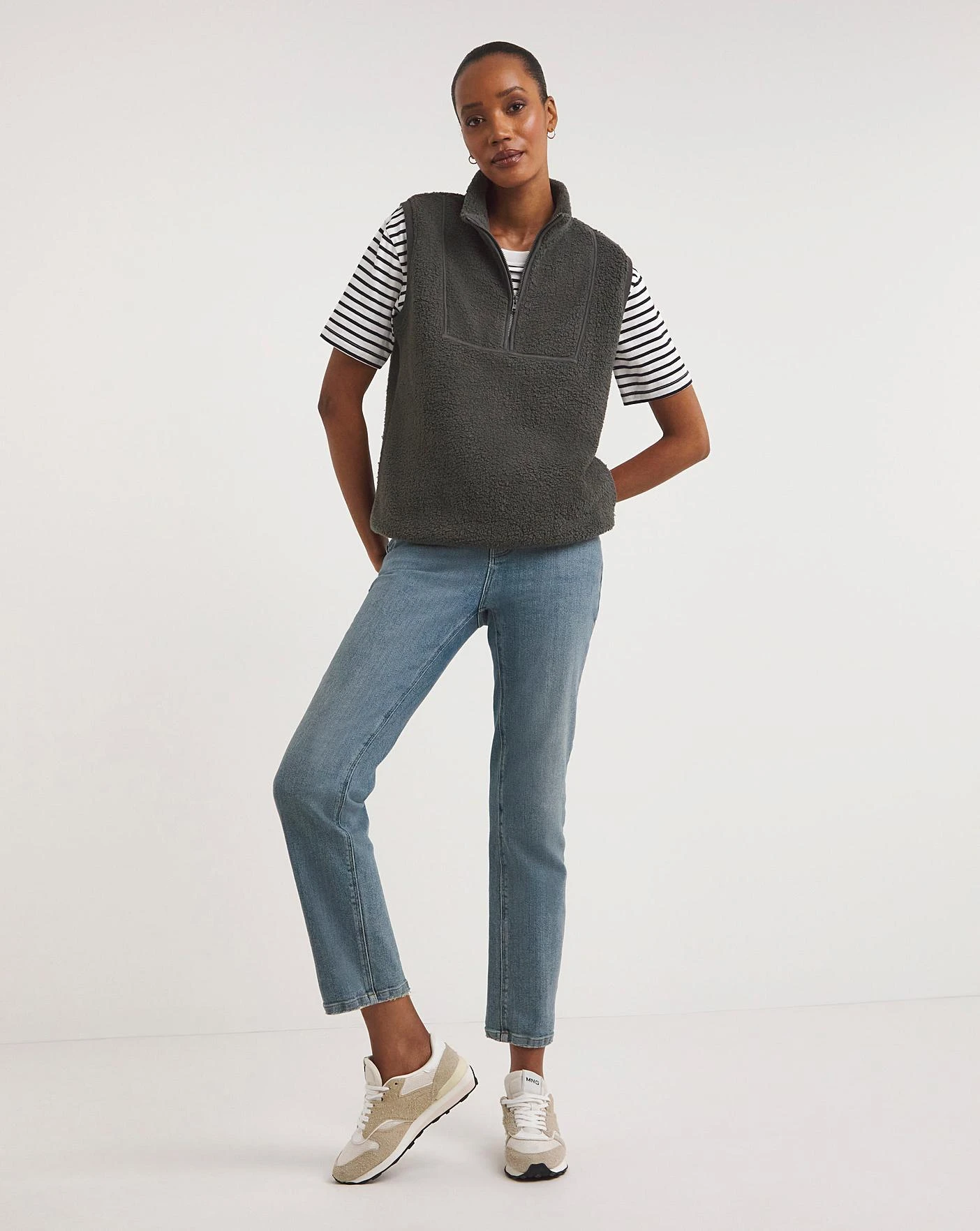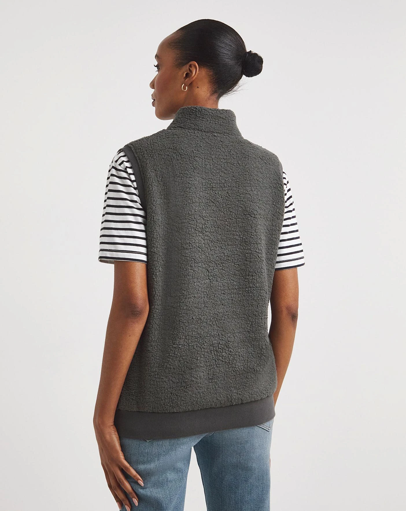 Our sleeveless borg jacket is the perfect transitional piece for your wardrobe! Wear over hoodies or long sleeve tops to keep cosy and warm.