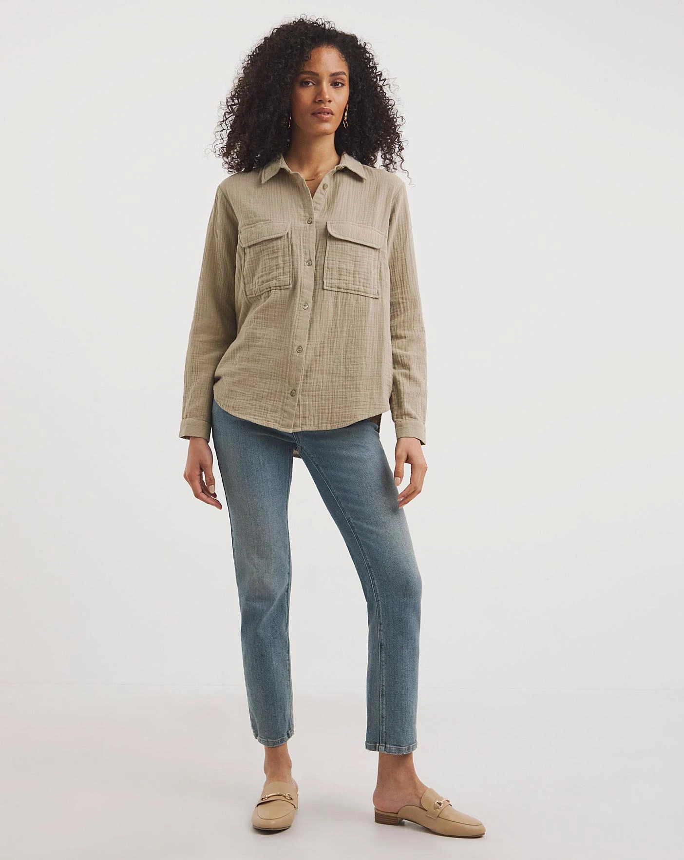 The cheesecloth relaxed shirt is a great daytime piece that can be paired easily with jeans. Please note that this shirt comes in a relaxed fit so that you can stick to your usual size.