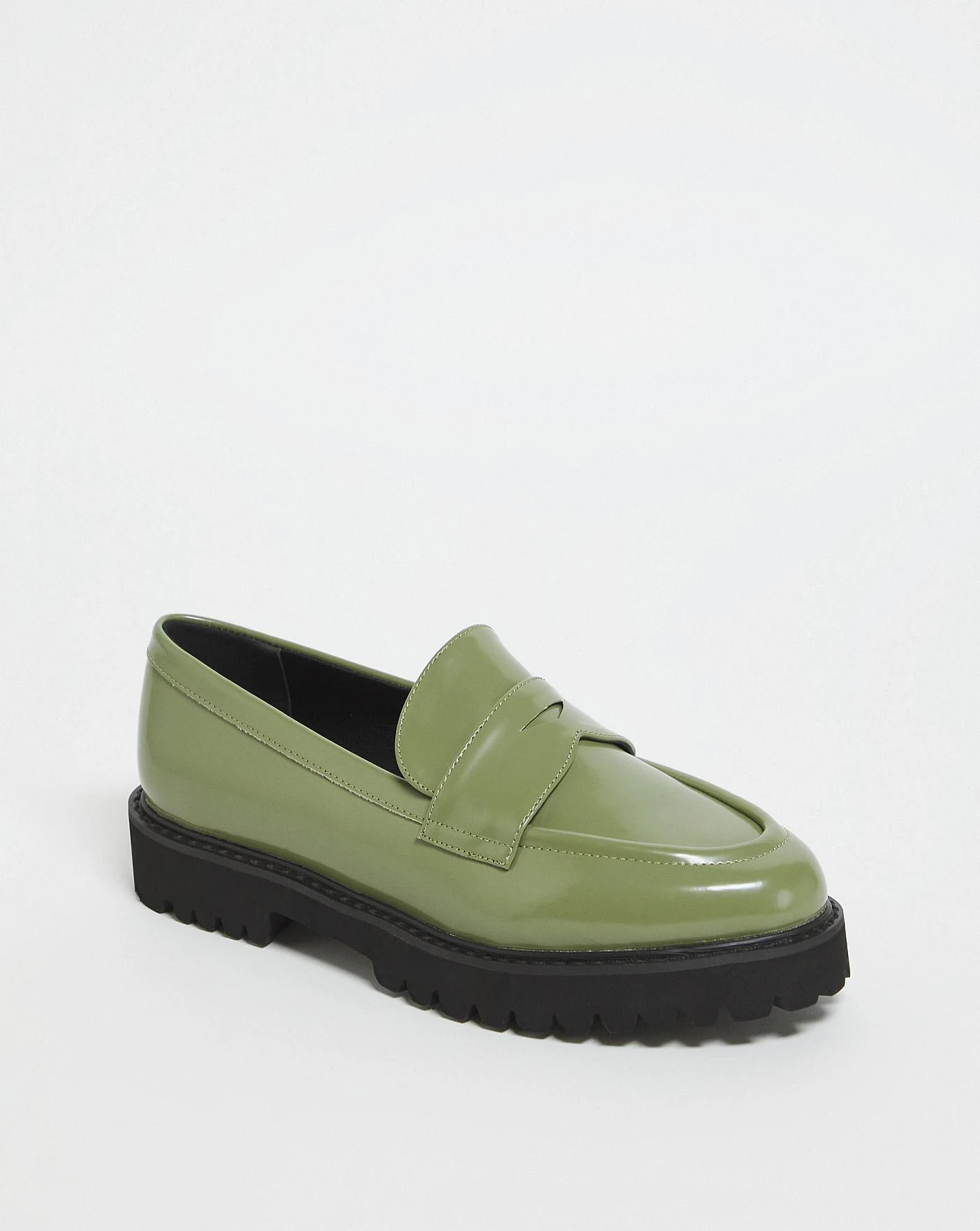 These chunky sole loafers are a perfect addition to elevate your workwear. Finished with a patent look and a cushioned sock.