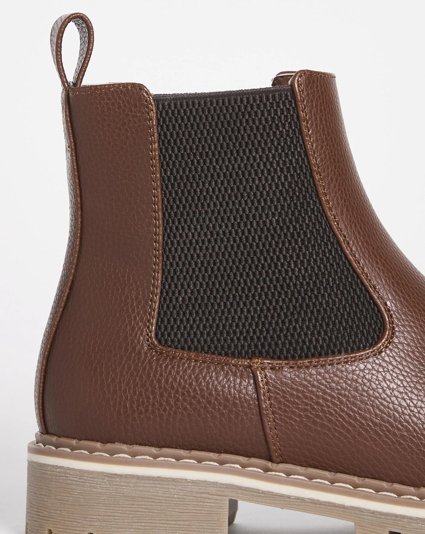 The classic cleated chelsea boot is a must have staple boot. Features an elasticated panel for ease putting on/pulling off.