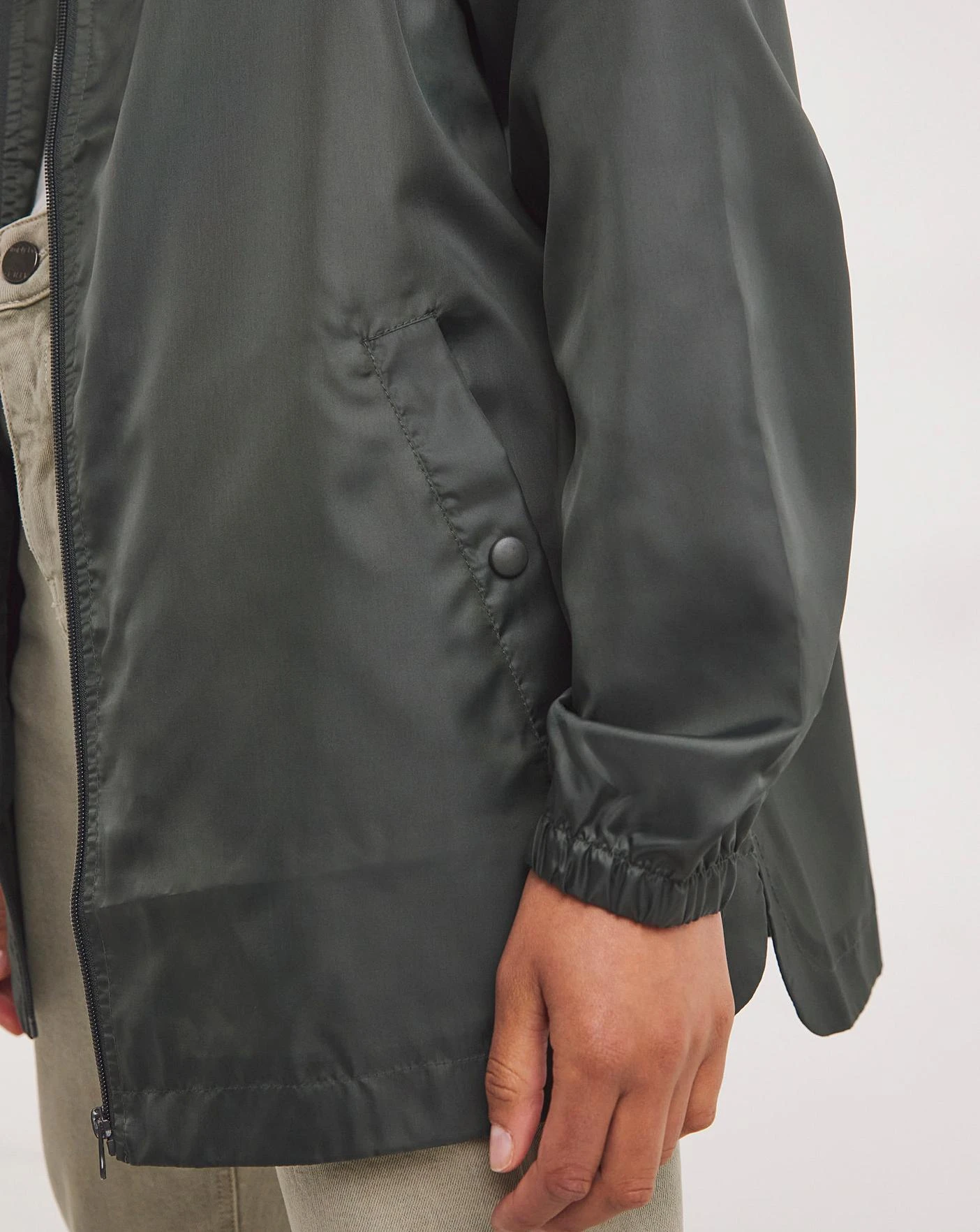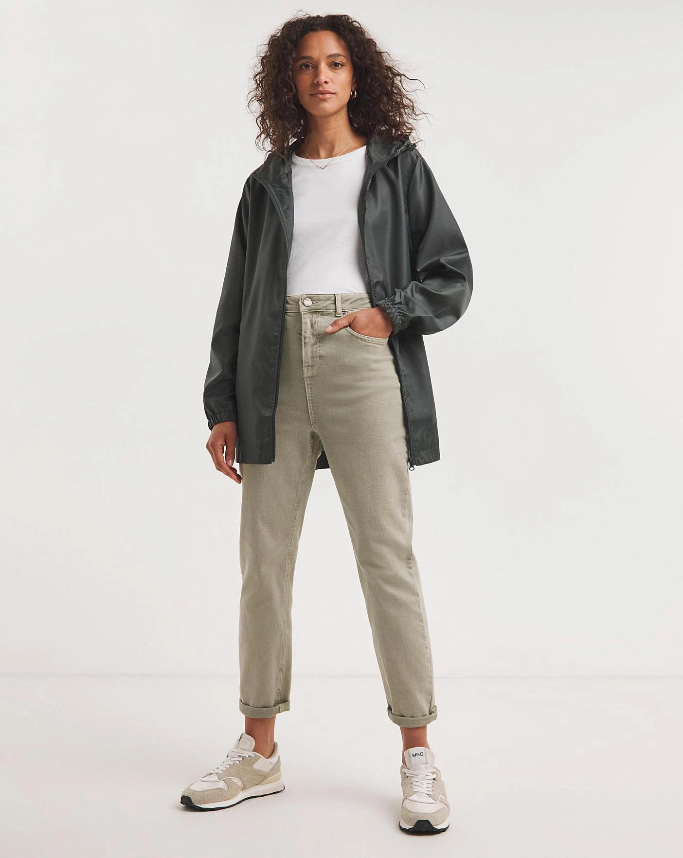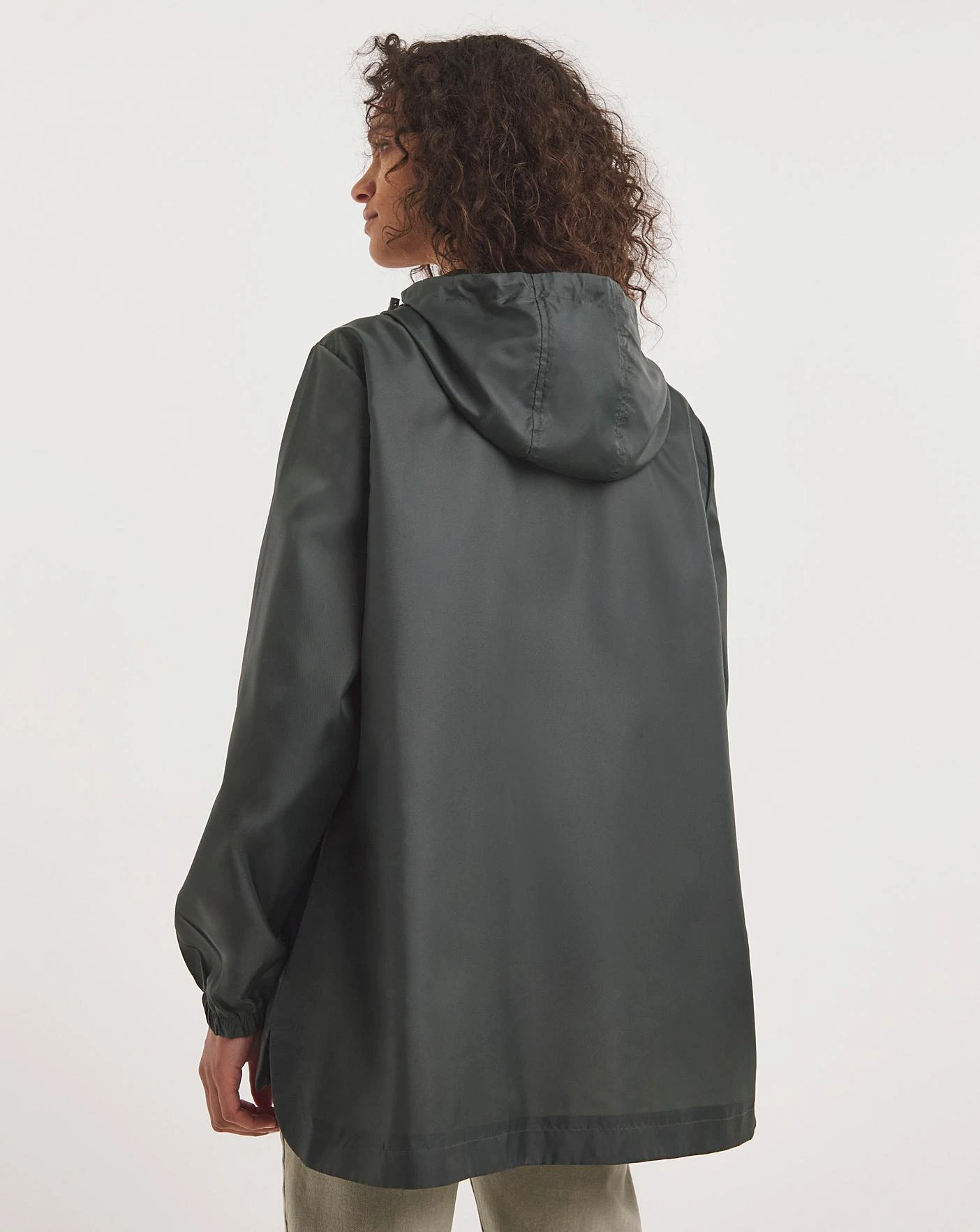 Our lightweight pac-a-mac features an adjustable hood, elasticated cuffs, side pockets and a new modern dip back hem. New dark green colour way!