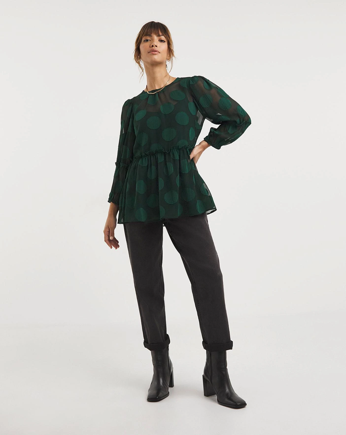 For a great seasonal look, choose our dobby spot top. With a flattering spot detailing, this top can be paired easily with jeans or dressed up with some leather trousers. As a versatile piece, this top can transform your daytime look into the evening! Please note that this top comes in a relaxed fit and is made of a non-stretch polyester.