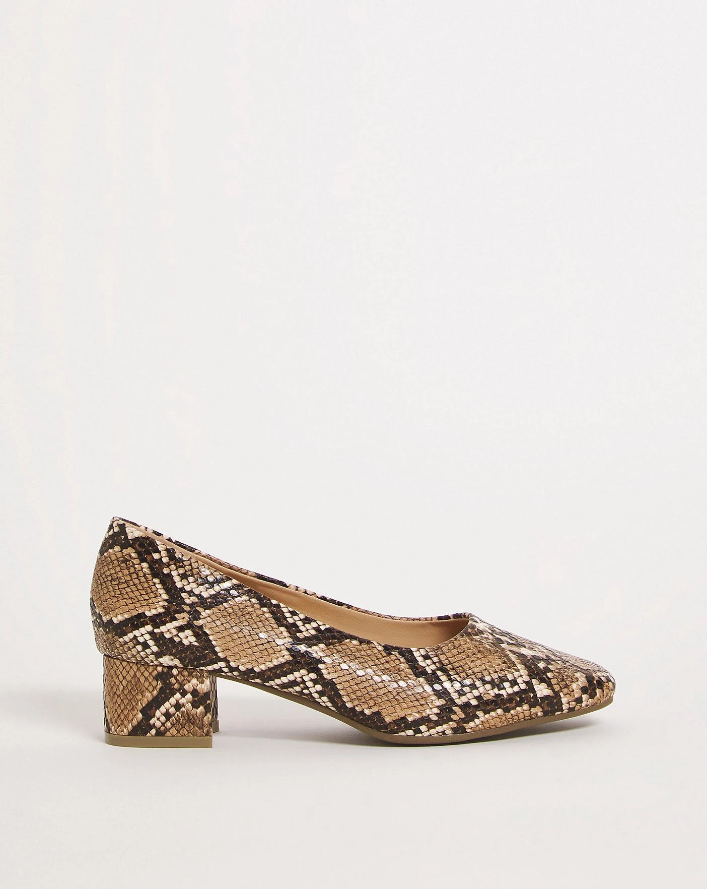 These contemporary block heel court shoes are an essential for your wardrobe. Soft leather look upper, textile lining, cushioned sock and finished on a flexi sole for all day comfort. Pair them with any outfit for a chic look.