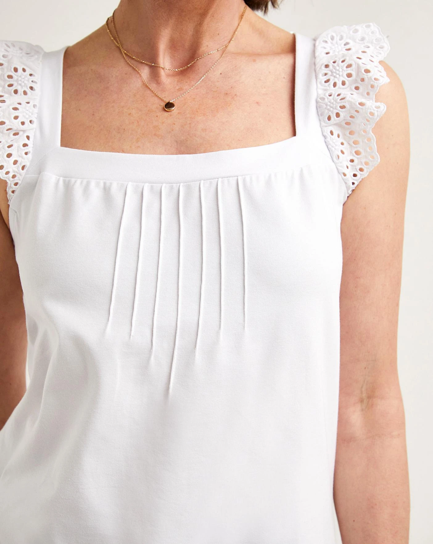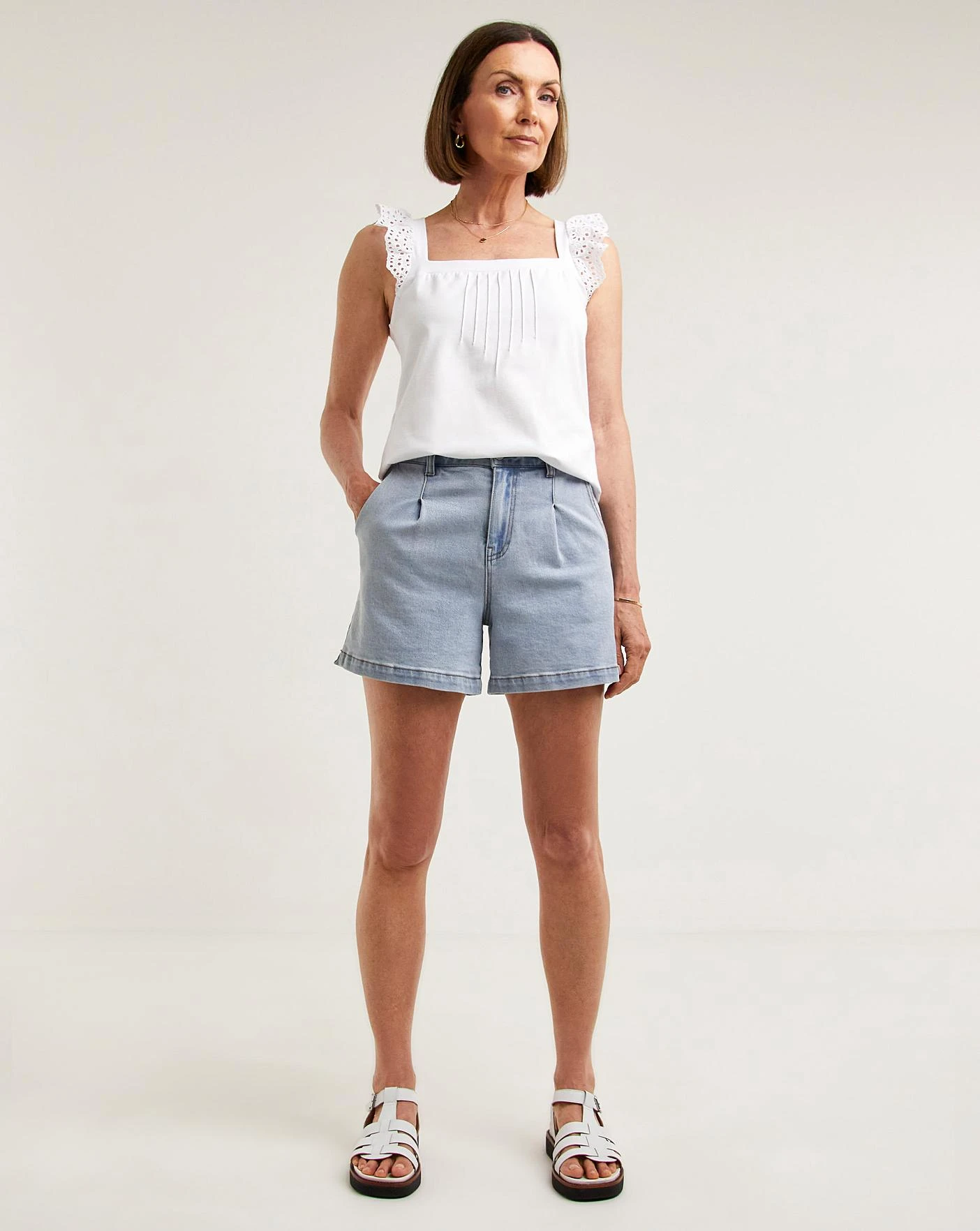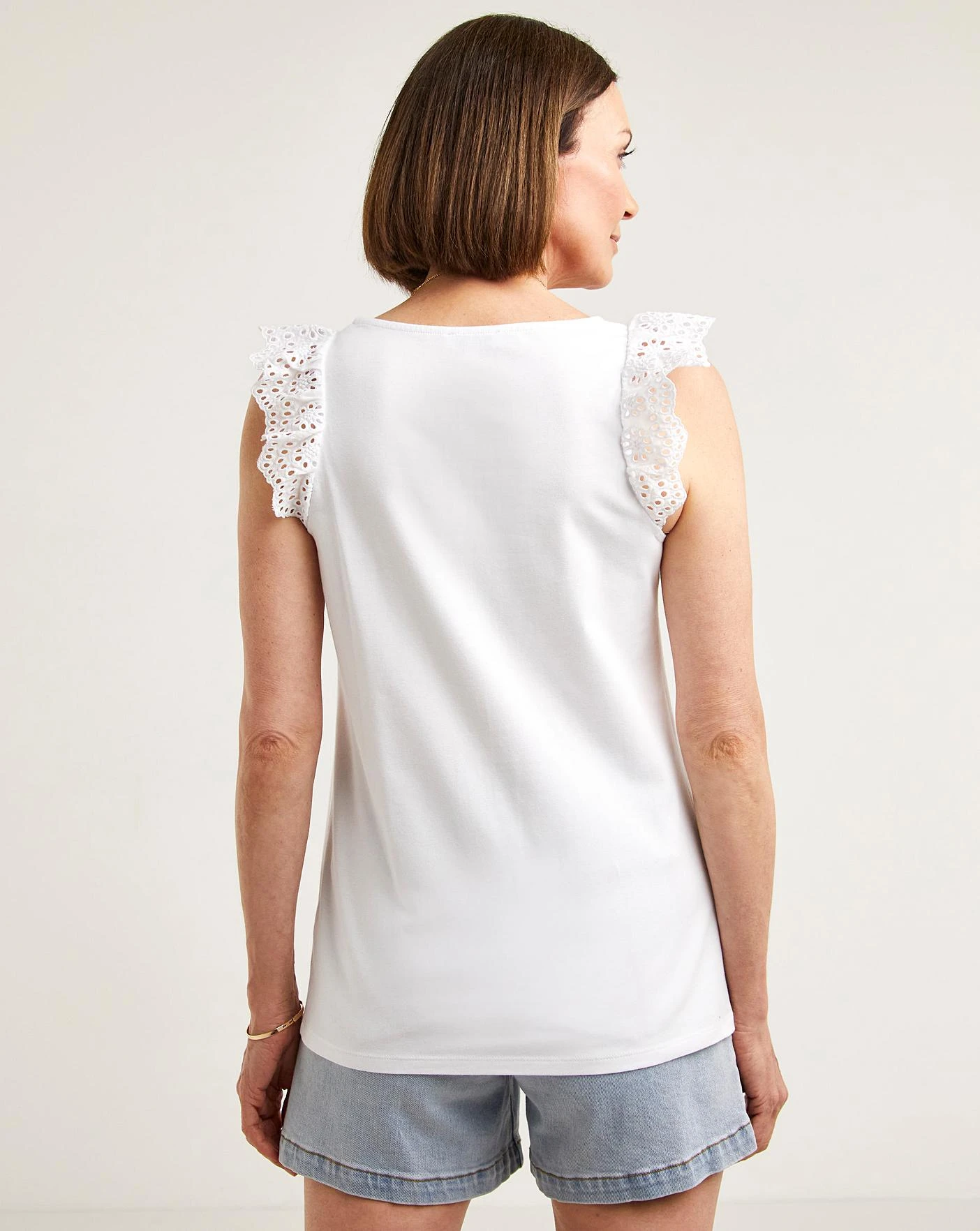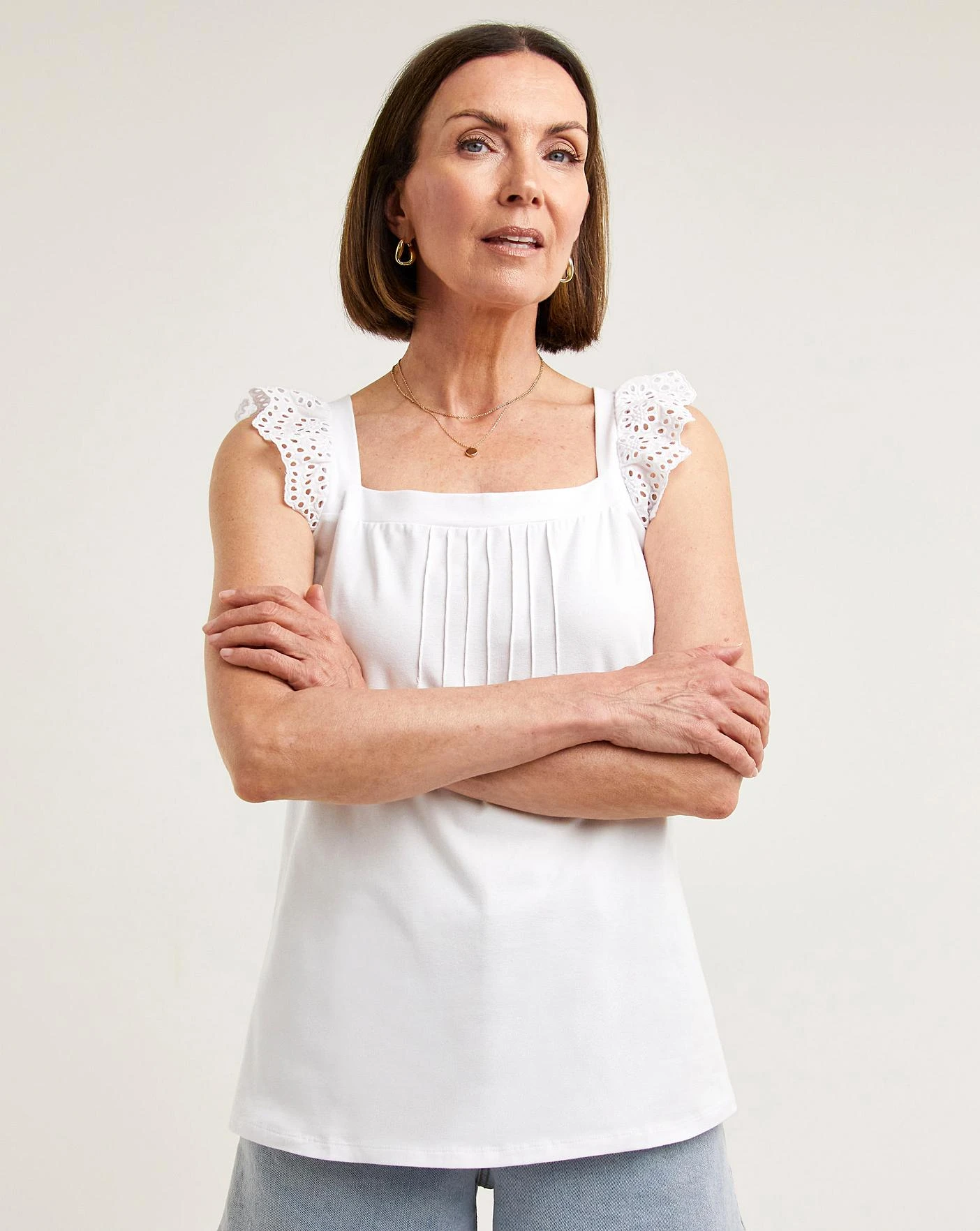 Bring an element of feminine to your everyday wardrobe with this frill sleeve jersey top. Featuring short sleeves and a quare neckline. Pair with your favourite jeans.