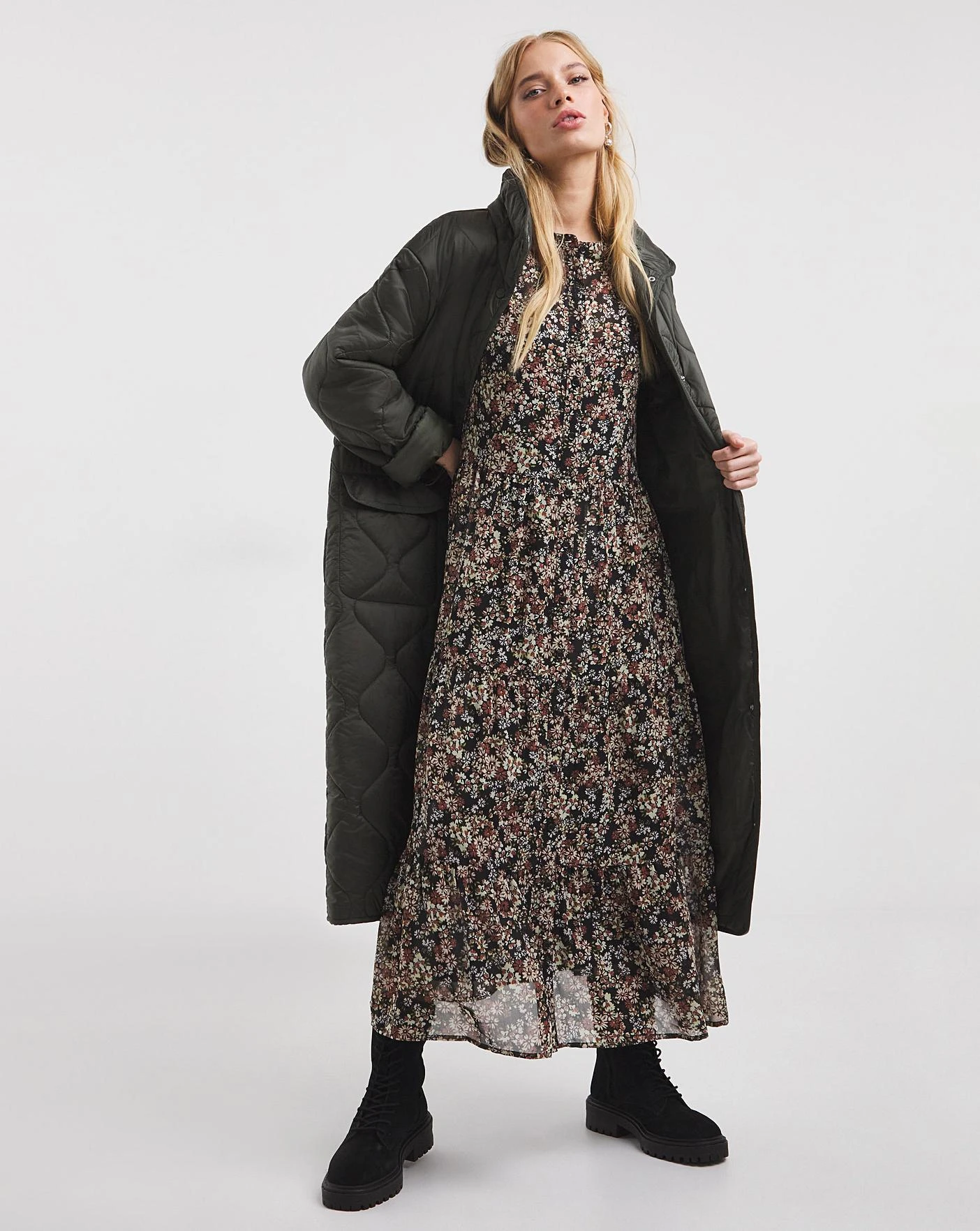 Feel chic in this floral all over print maxi smock dress. Featuring a button through front with a classic round neckline, perfect for looking effortless this season.