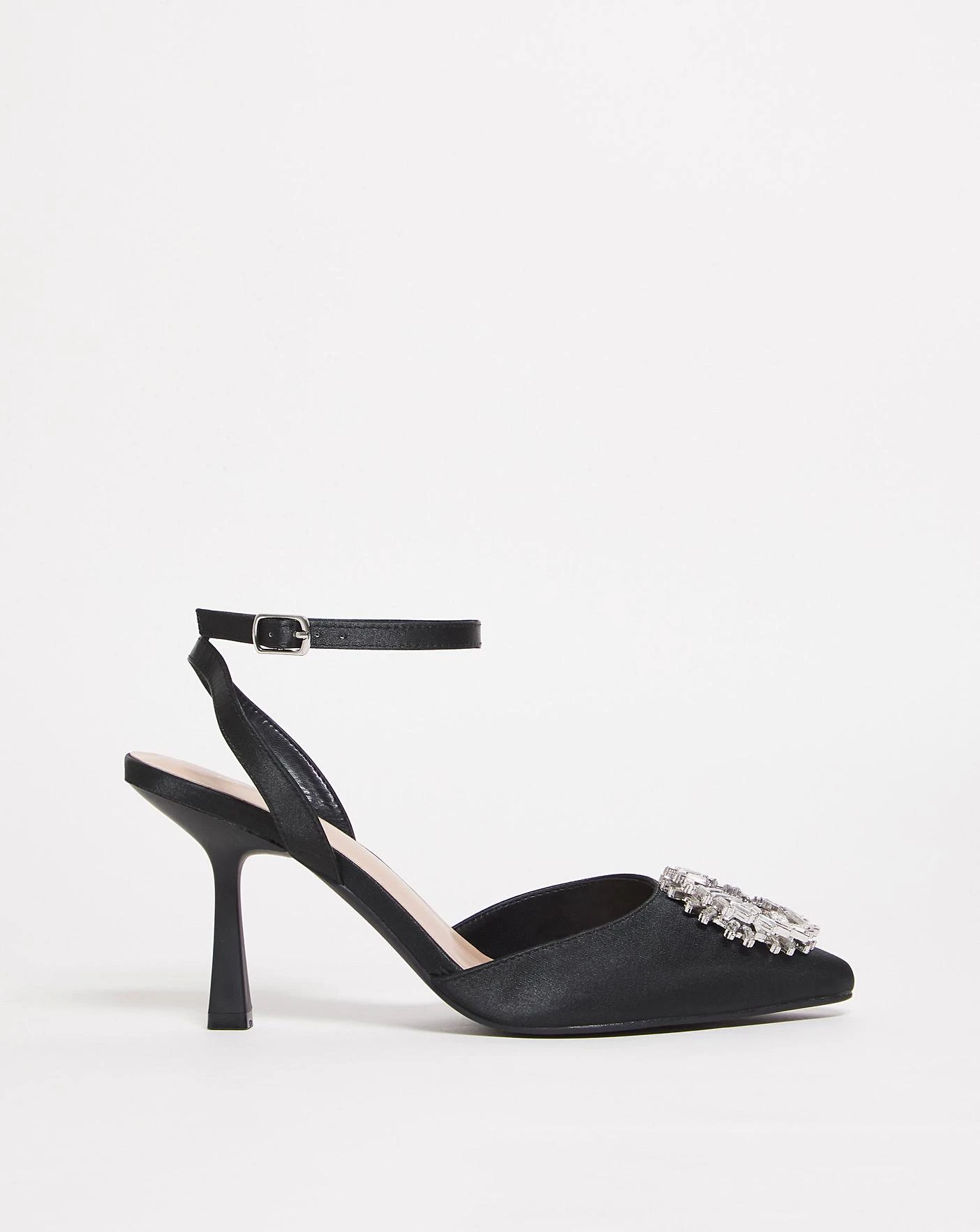 The perfect occasion shoe, this embellished Joanna Hope heeled strappy shoe features a large diamante embellishment, pointy toe shape and flared heel.