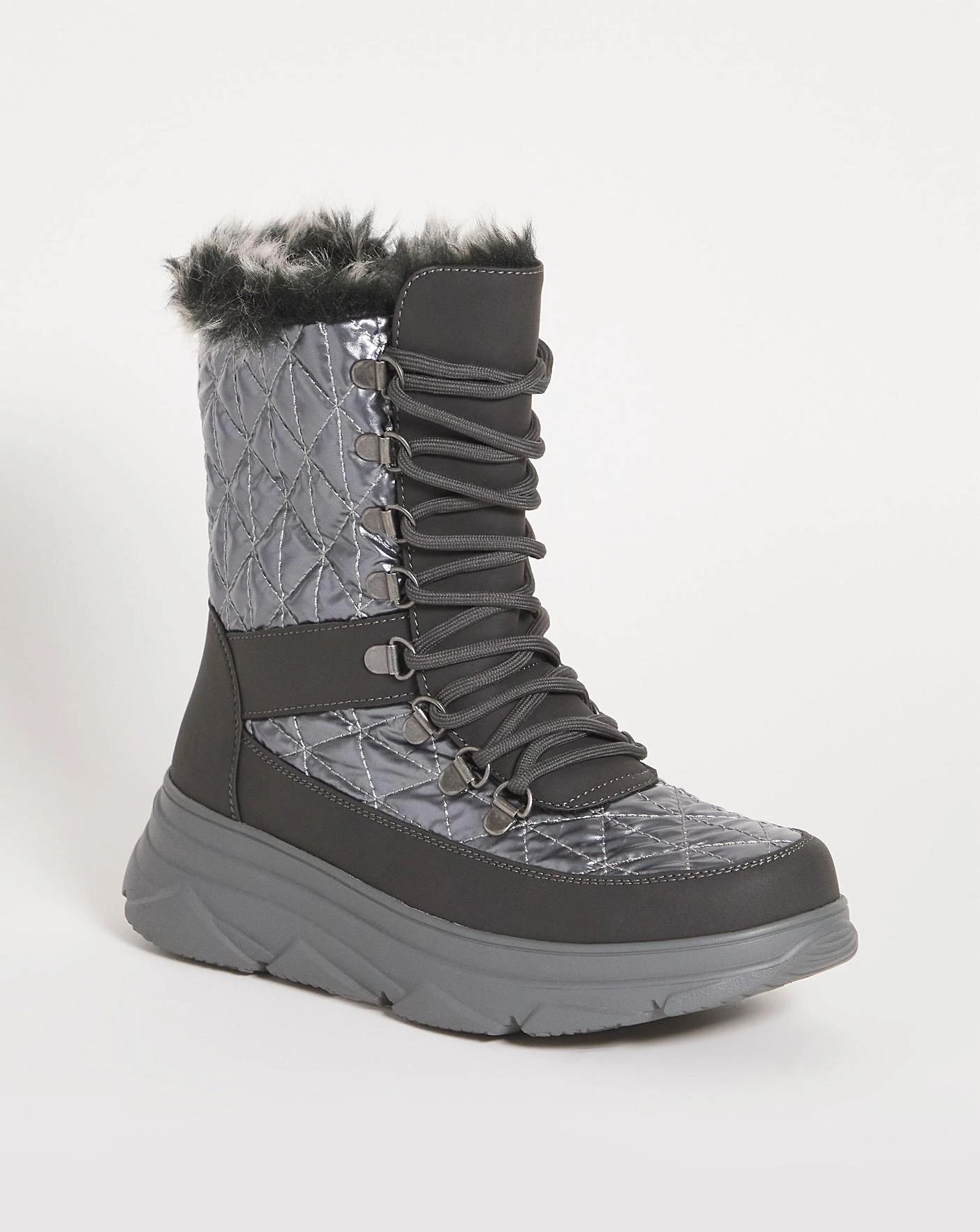 Be prepared for the cold weather with our new lace front snow boot, lined with faux fur, perfect to keep your feet cosy.