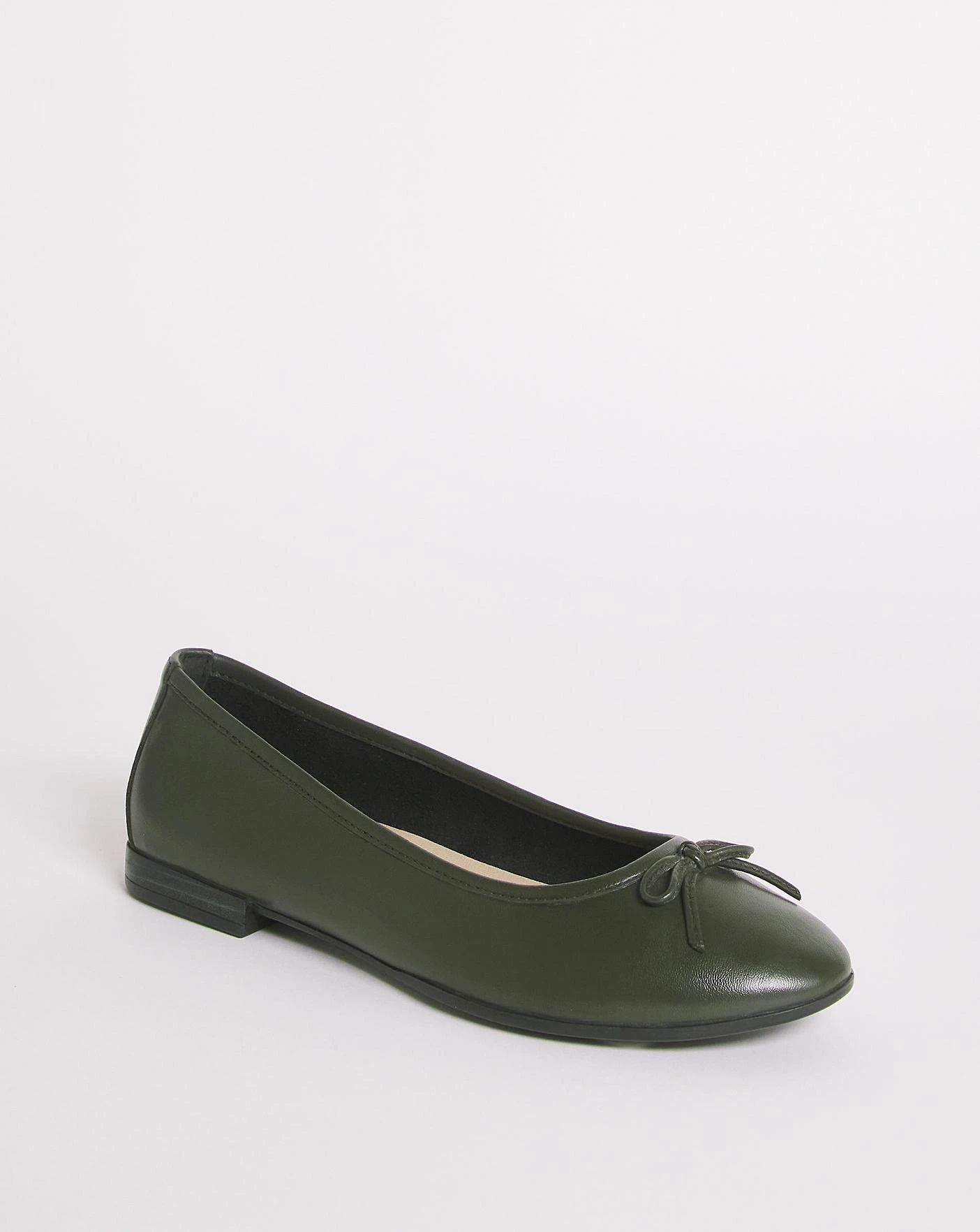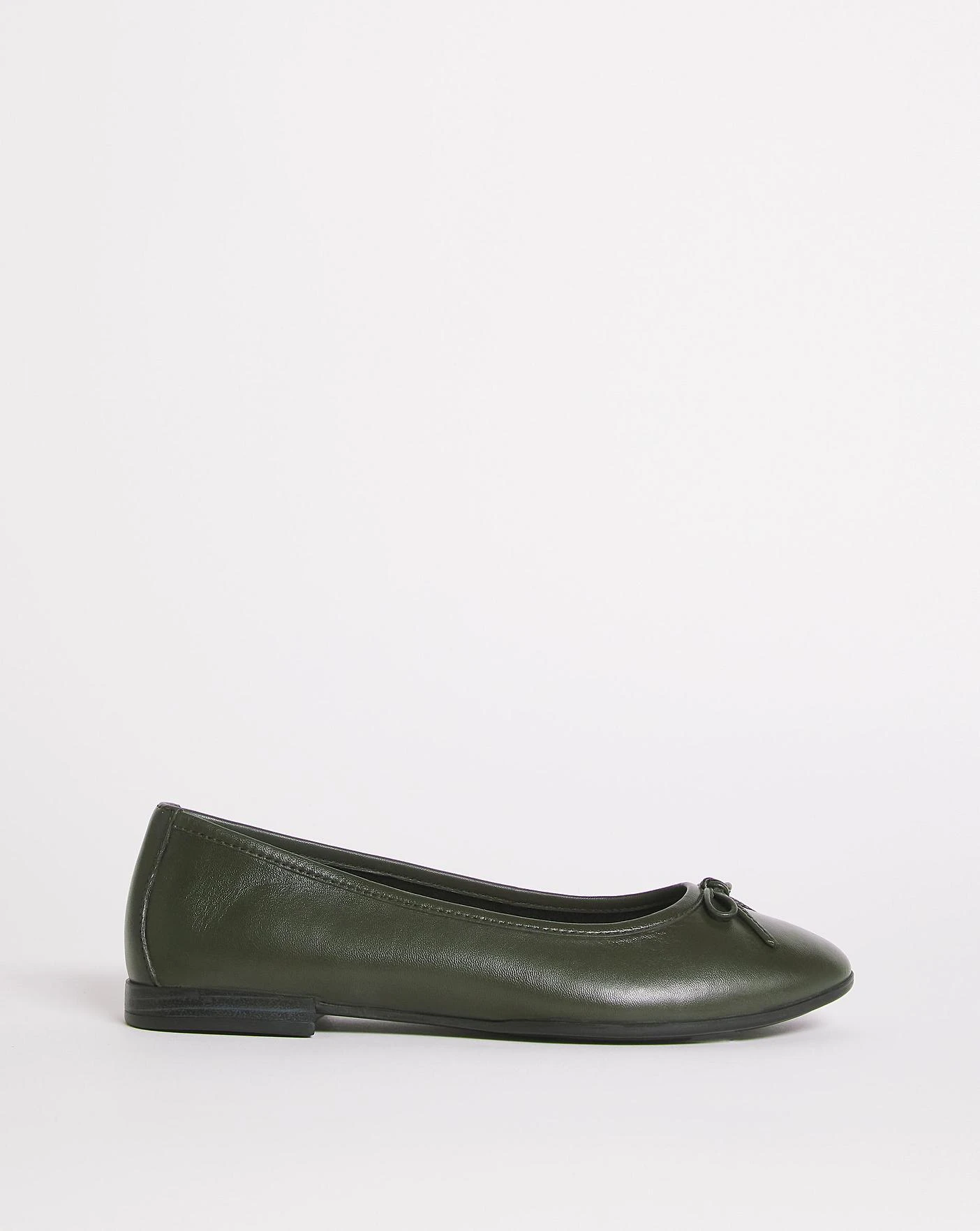 The new leather ballerina features a premium leather upper, elasticated heel counter and soft fleible sole for a comfortable fit. Wear with denim and knitwear for a stylish look.