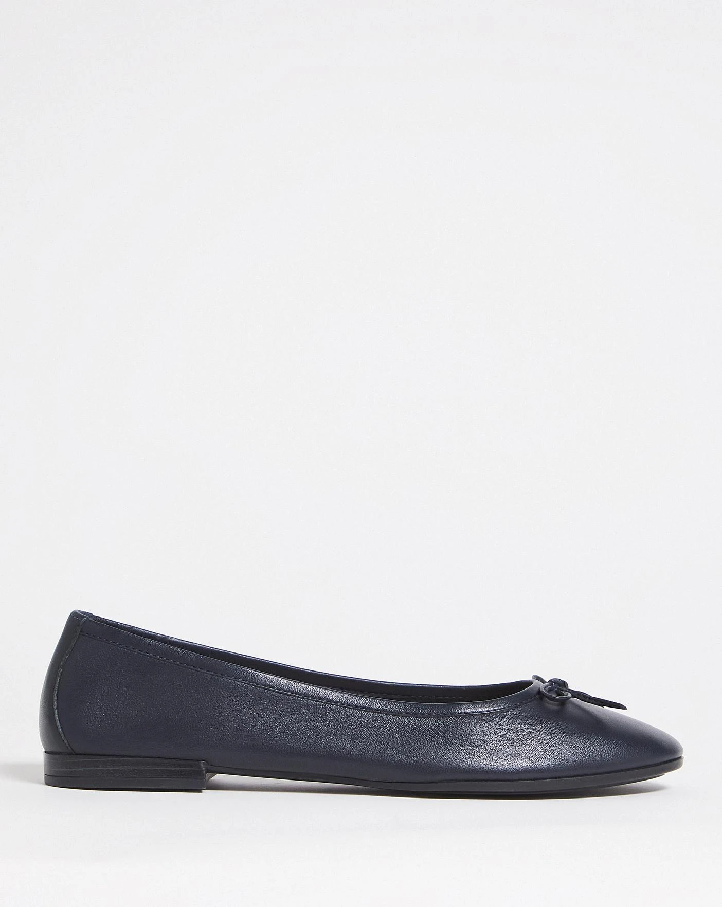 The new leather ballerina features a premium leather upper, elasticated heel counter and soft fleible sole for a comfortable fit. Wear with denim and knitwear for a stylish look.