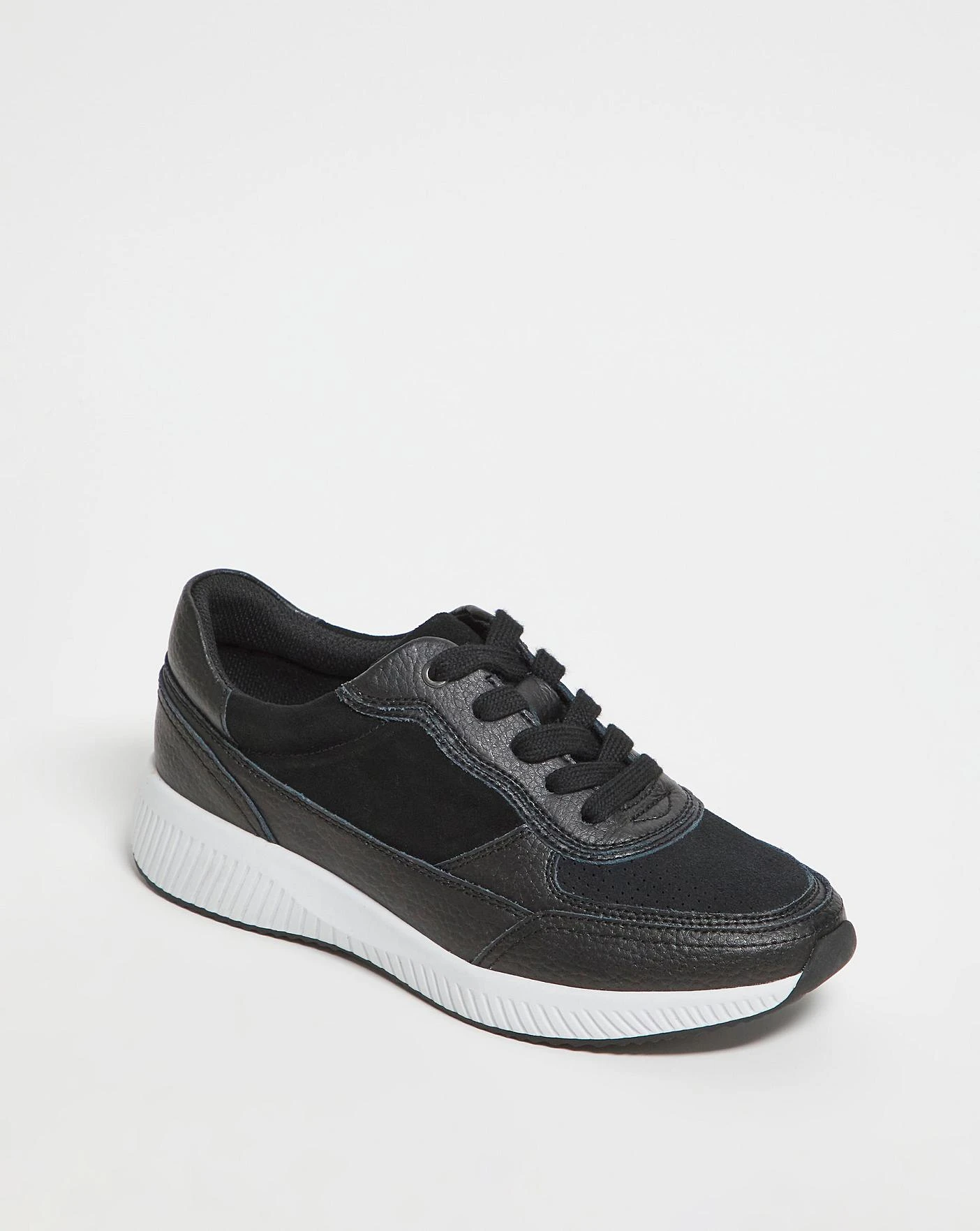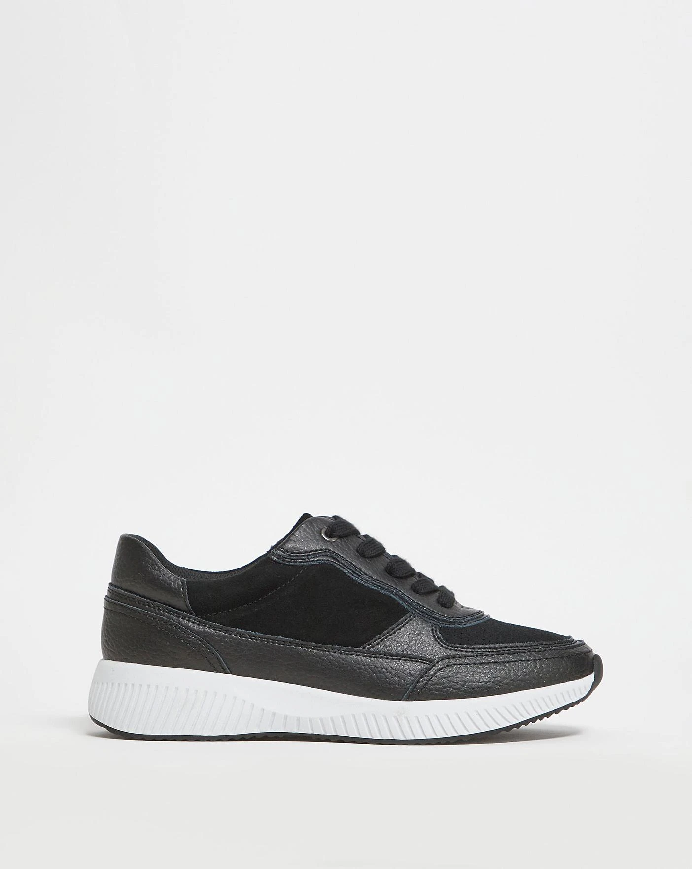 Our new leather lace up trainer is a must have this season. Designed with a mixed material upper and cushioned footbed, this trainer perfectly combines style and comfort.