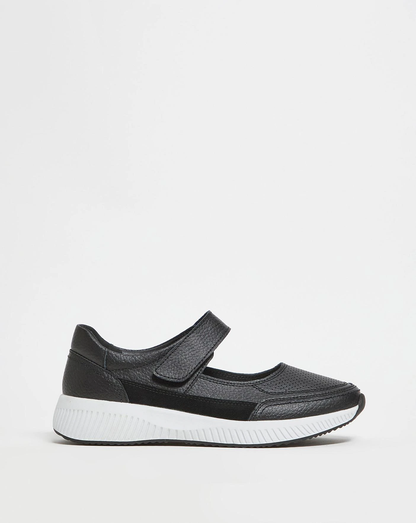 Our new leather mixed material lesiure shoe is perfect for all day wear. The combination of the padded footbed and the adjustable touch and close bar allow for the ultimate comfort.