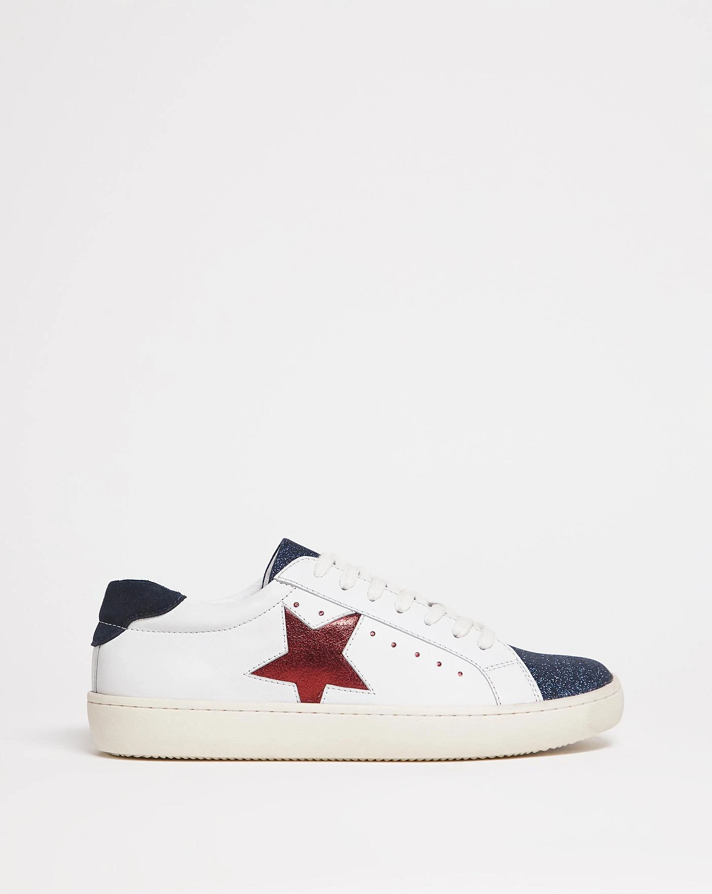 These contemporary leather star trainers are a must have! Detailed with mixed materials and metallic colouring, pair these with your favourite denim for an elevated look.