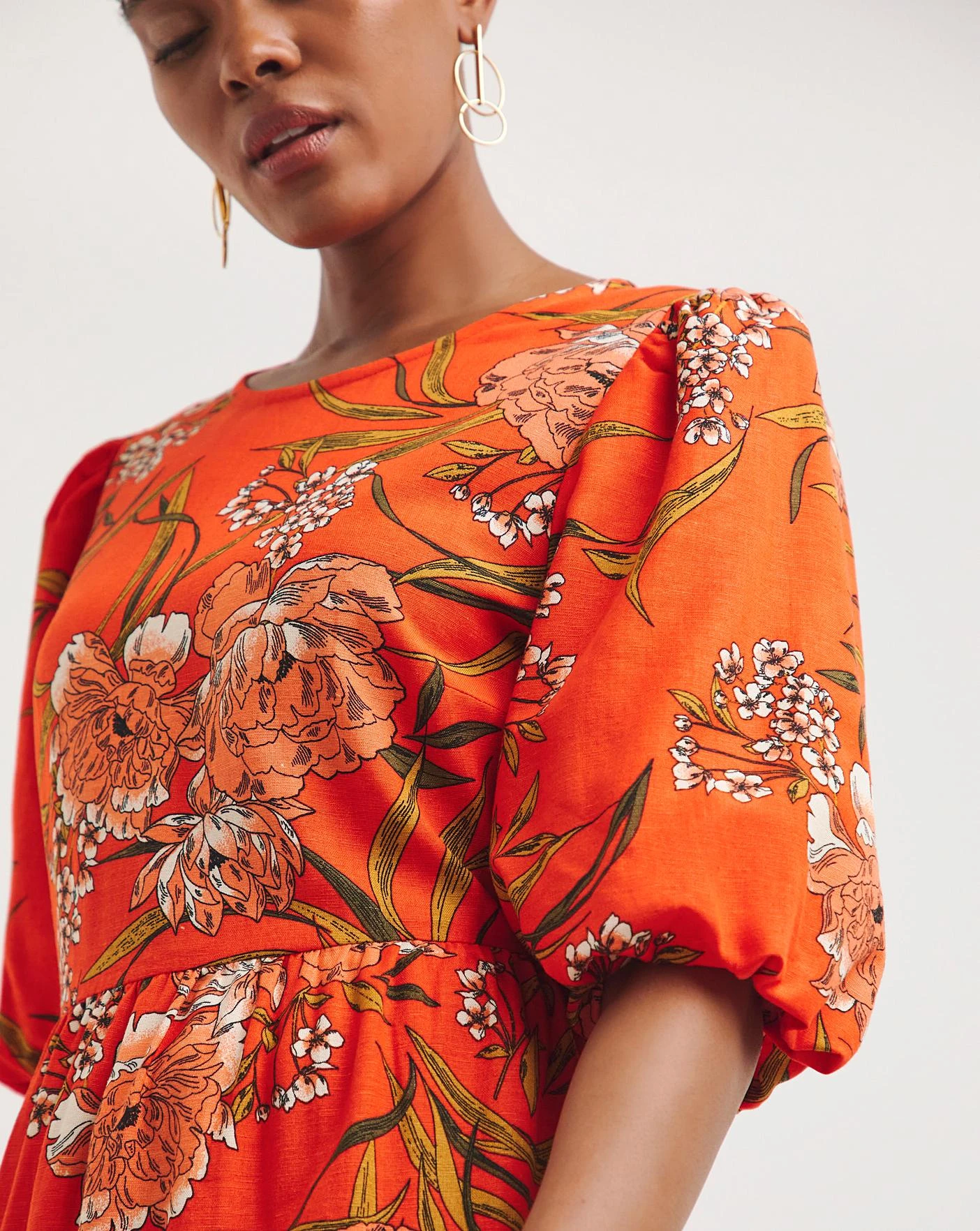 Perfect for your spring wardrobe. Designed in a linen mix fabric, this midi smock dress features a pretty tired hem and short voluminous sleeves. This modern, easy smock dress is the perfect throw on.