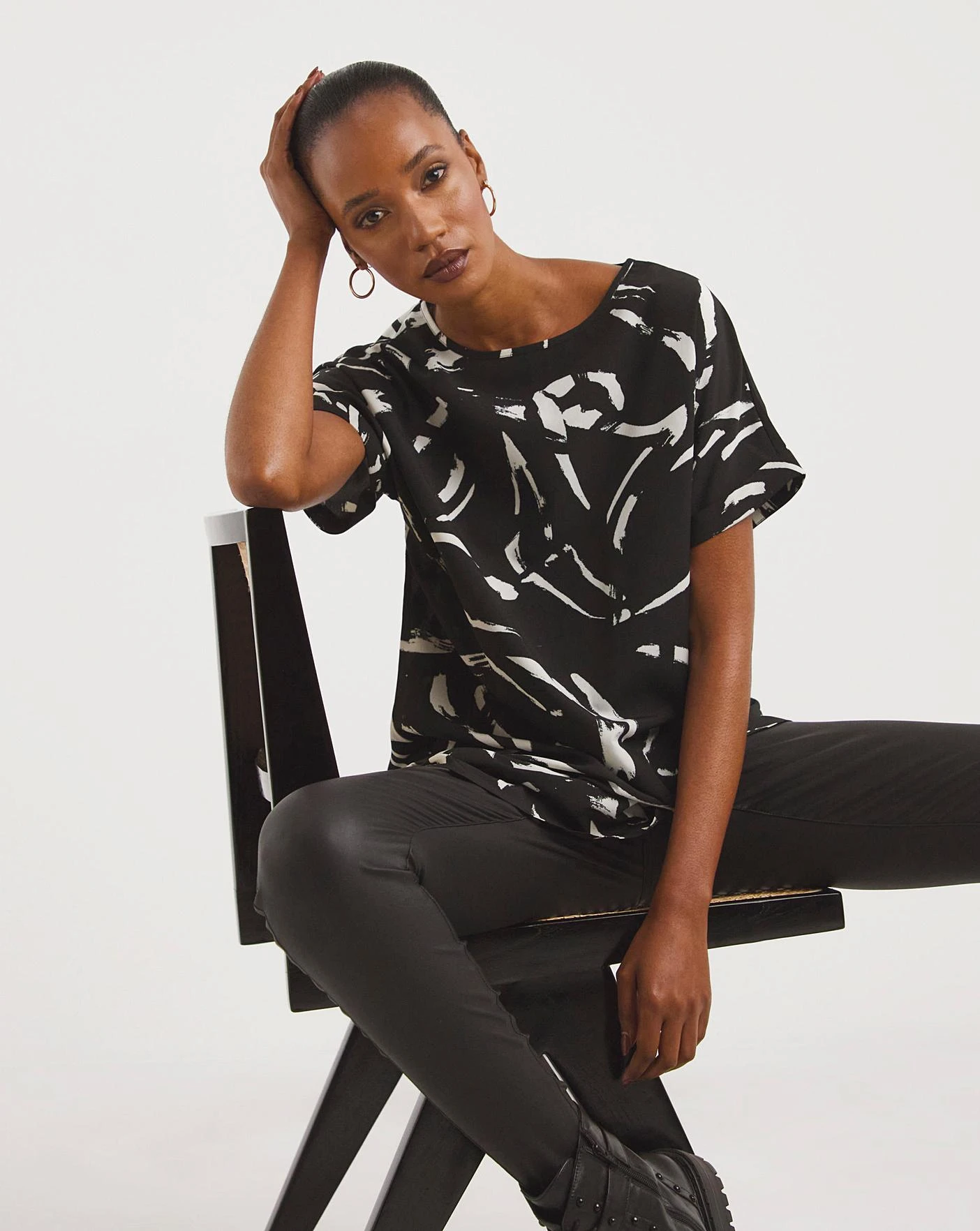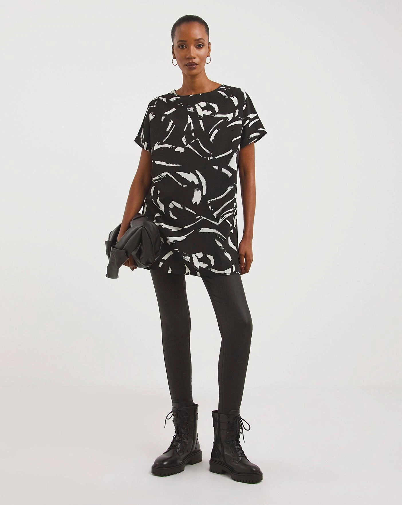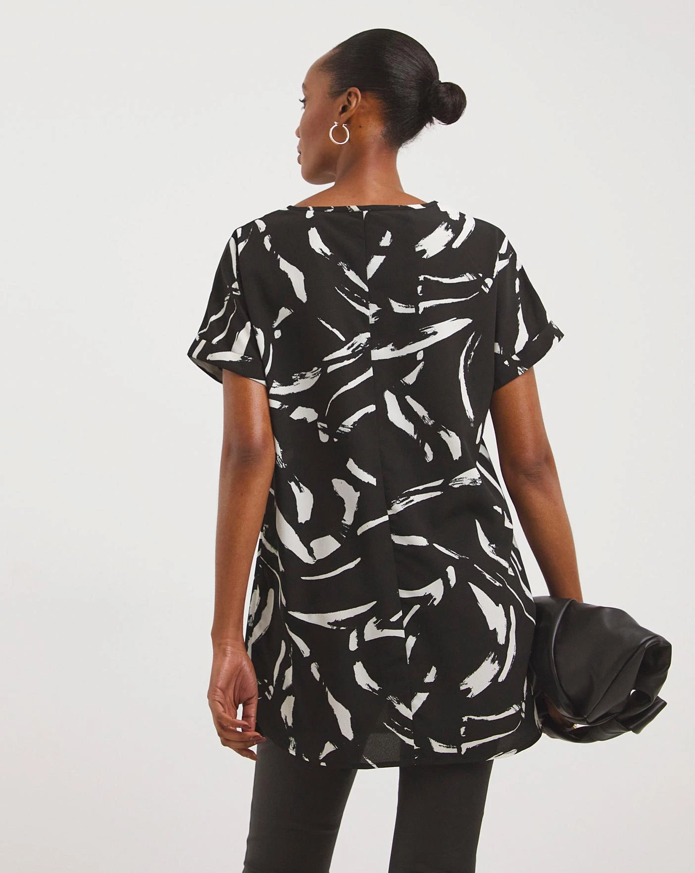 Our best-selling boxy top is back with a fresh print. With grown on short sleeves and curved hem, our longline boxy tops can be worn long over jeans or tucked in for a different look. In 100% non-stetch polyester, this top will feel soft on the skin and the boxy shape allows for a relaxed and comfortable fit.