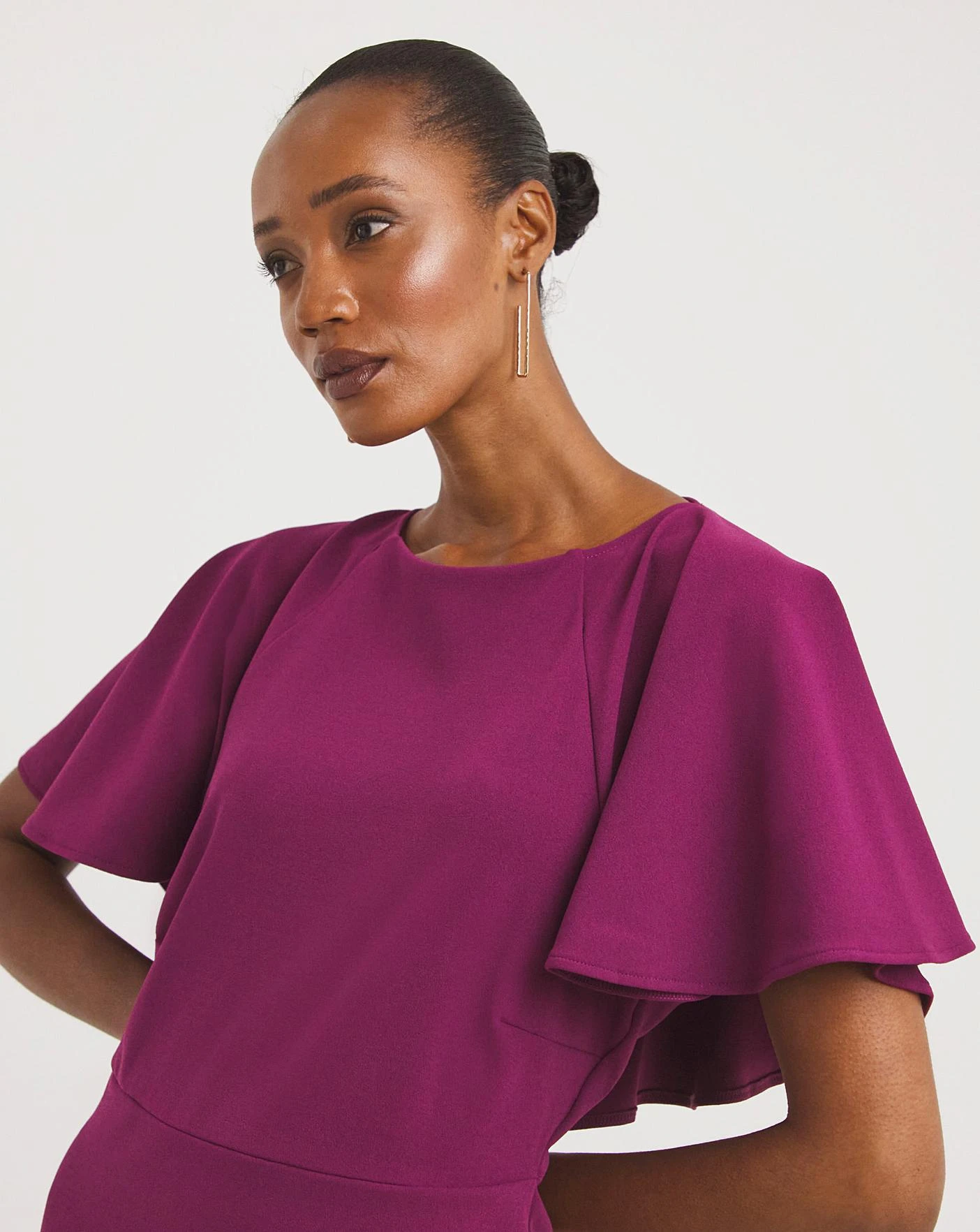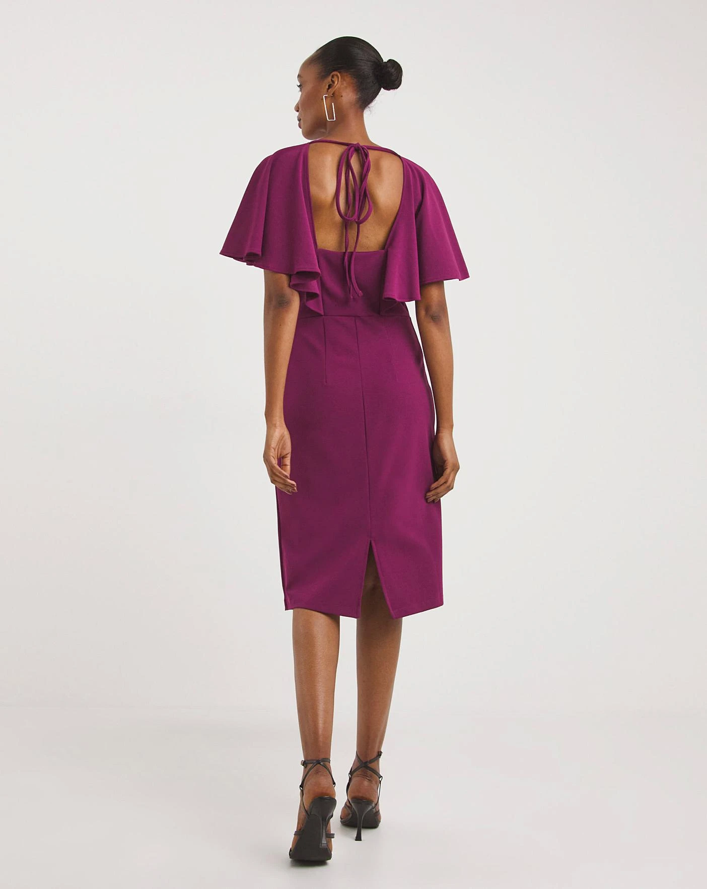 Style out this season’s latest trends with the Marylin Cape Sleeve Scuba Dress. The cape sleeve midi dress features tie back neckline adorned with statement frill sleeves. Showcasing a flattering bodycon fit, this going out dress is stylishly finished in a deep mulberry colour. Pair with your favourite shoes for a stylish ensemble.