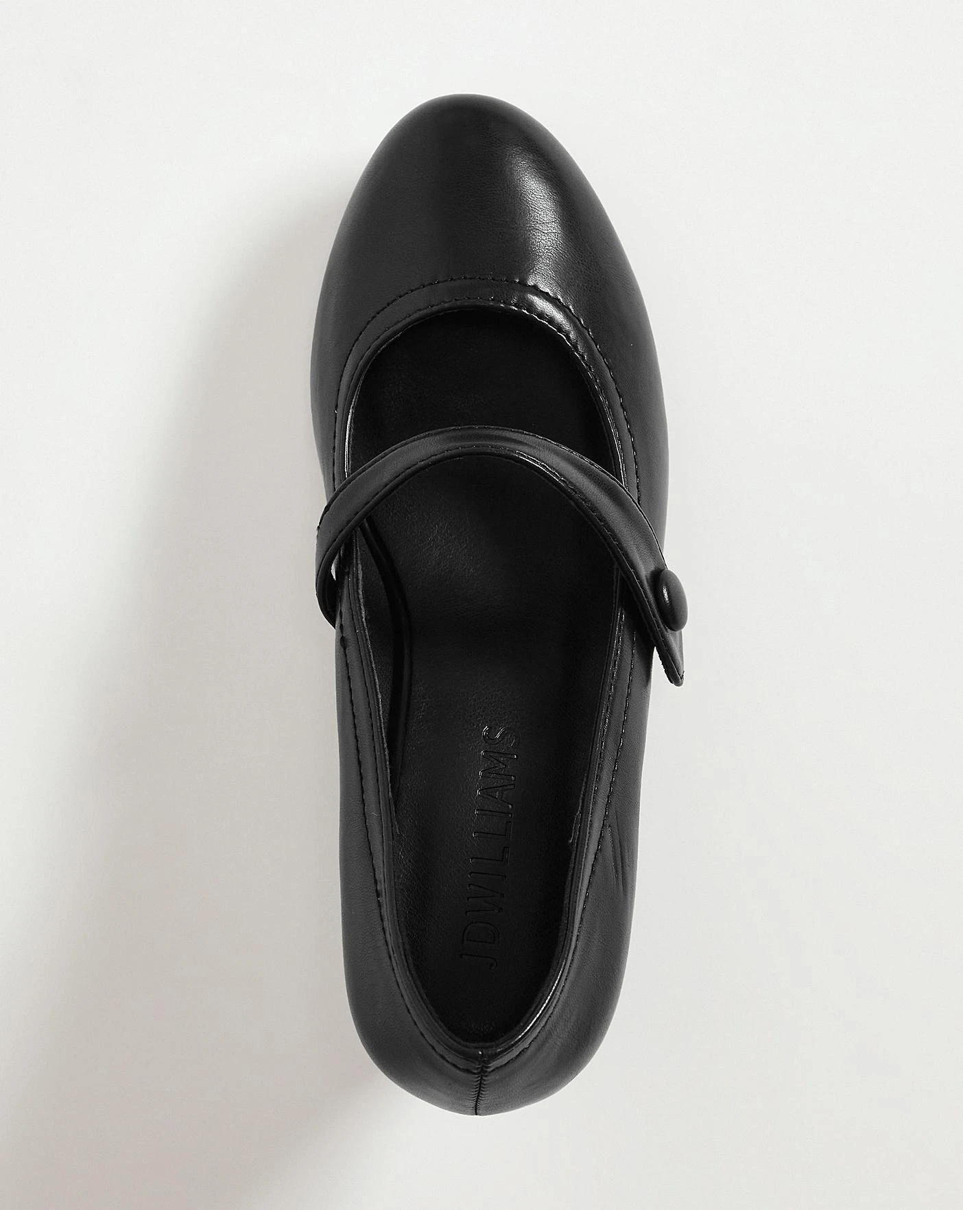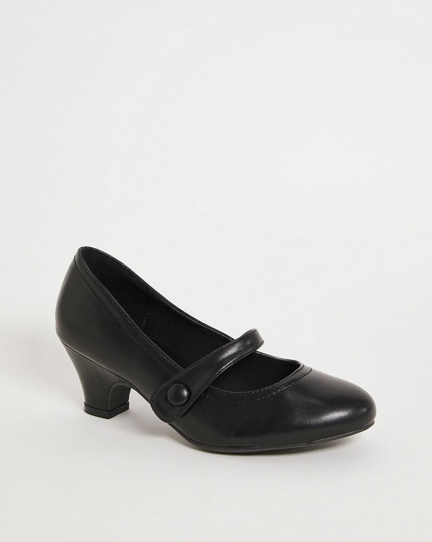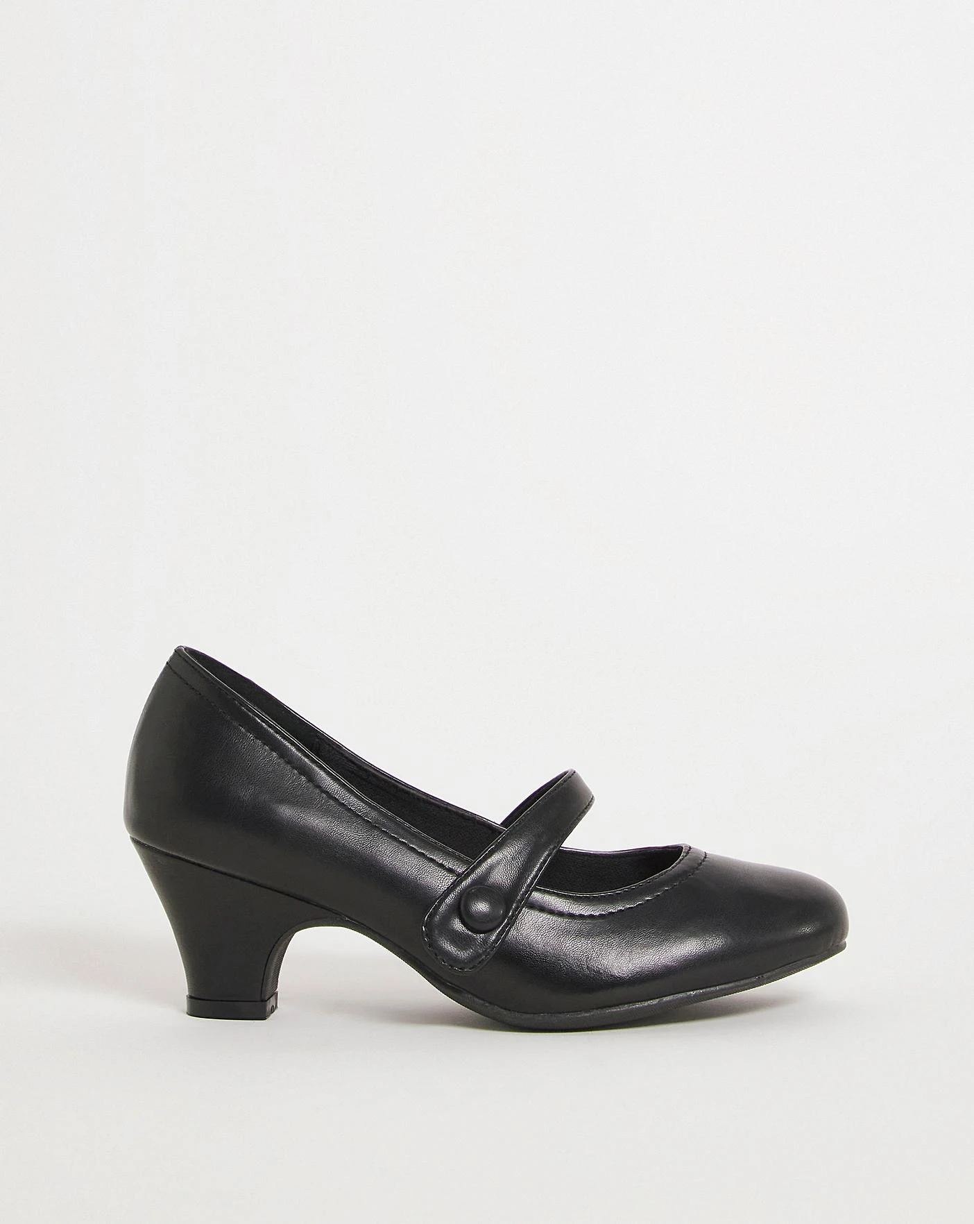 This cushion lined mary jane shoe provides the most comfort. Designed with a medium sized heel for a subtle boost of height, a fixed elasticated bar strap and flexible sole to allow for great movement.