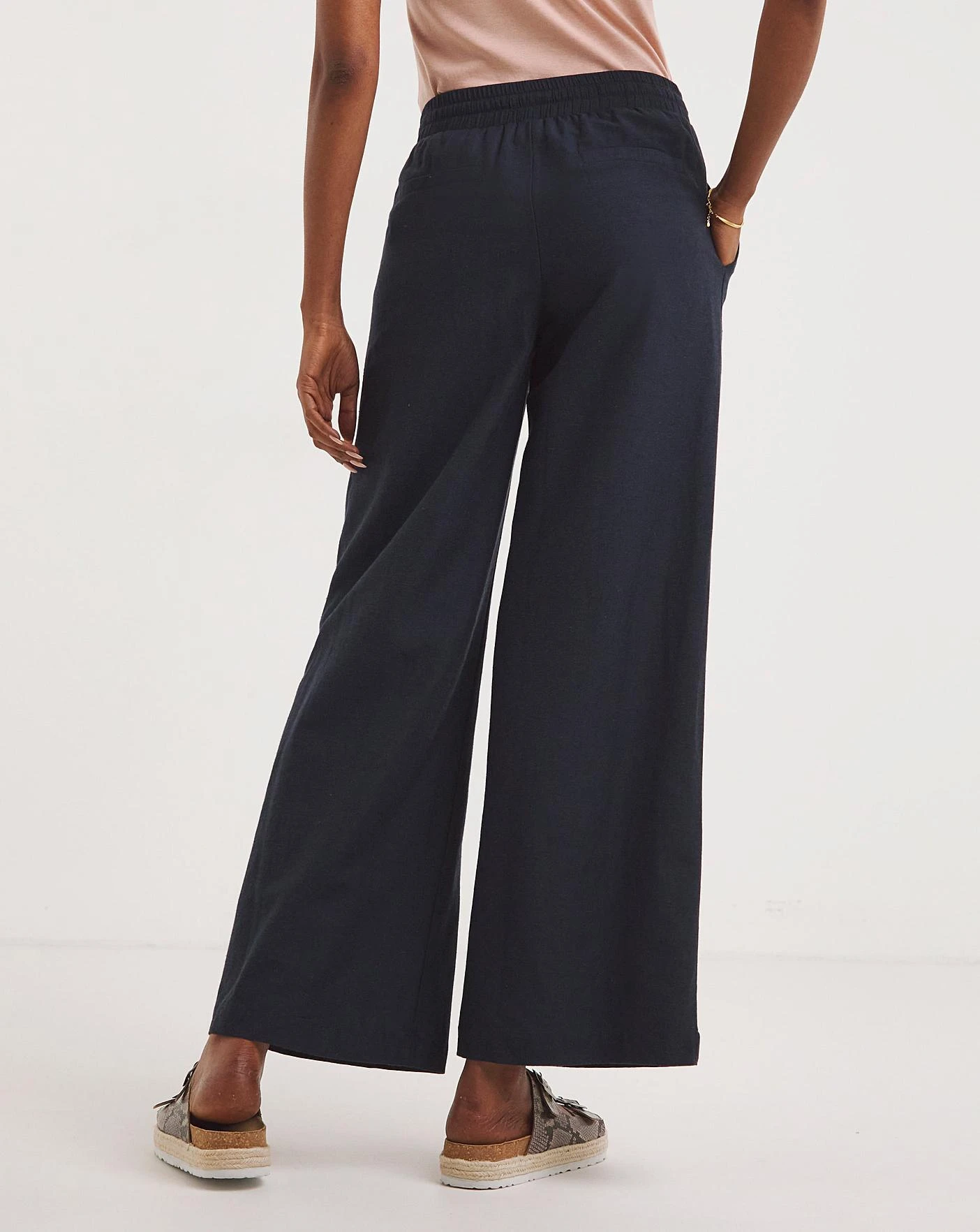 Our shape for this season, the linen blend wide legs are a true wardrobe essential. In a huge range of colours, these trousers feature a comfortable pull on elasticated waistband, a flattering wide leg and side pockets for convenience. Super easy to wear and to pair with any footwear and perfect for your summer holidays.