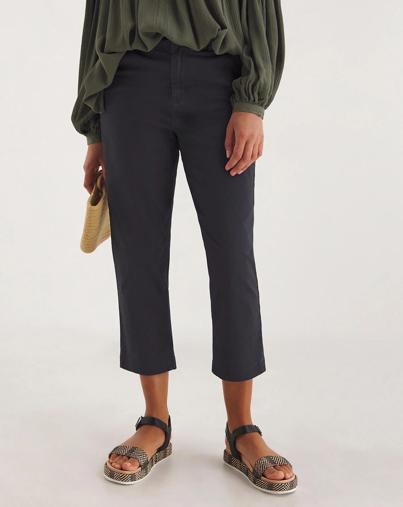 In a cotton rich fabric with added stretch, these cropped chino trousers are not only a lovely addition to your summer wardrobe but they are also super comfy too! Featuring 4 pockets and a super flattering mid calf length with small vent for added movement. Pair with your favourite sandals and holiday top for an effortless classic look.