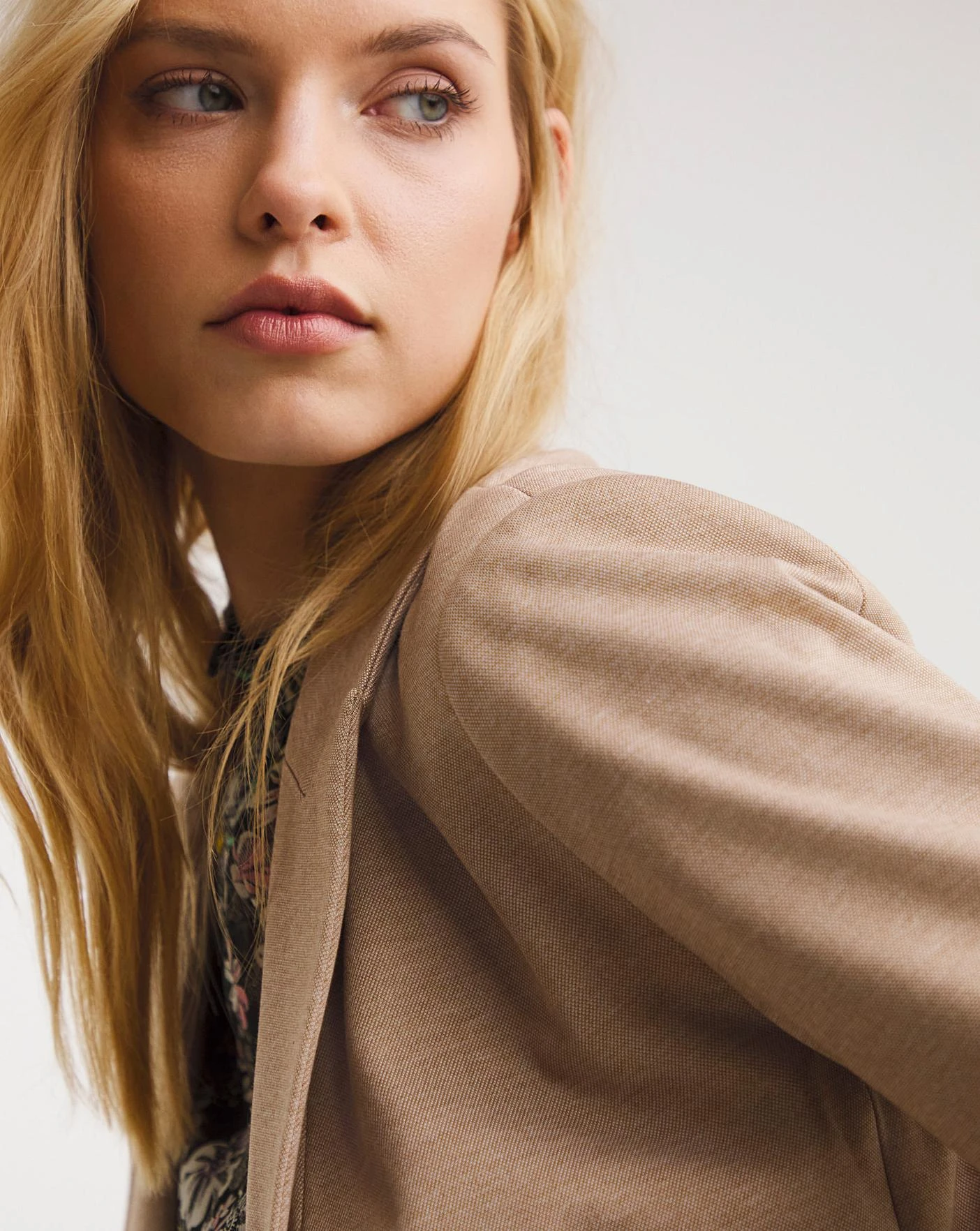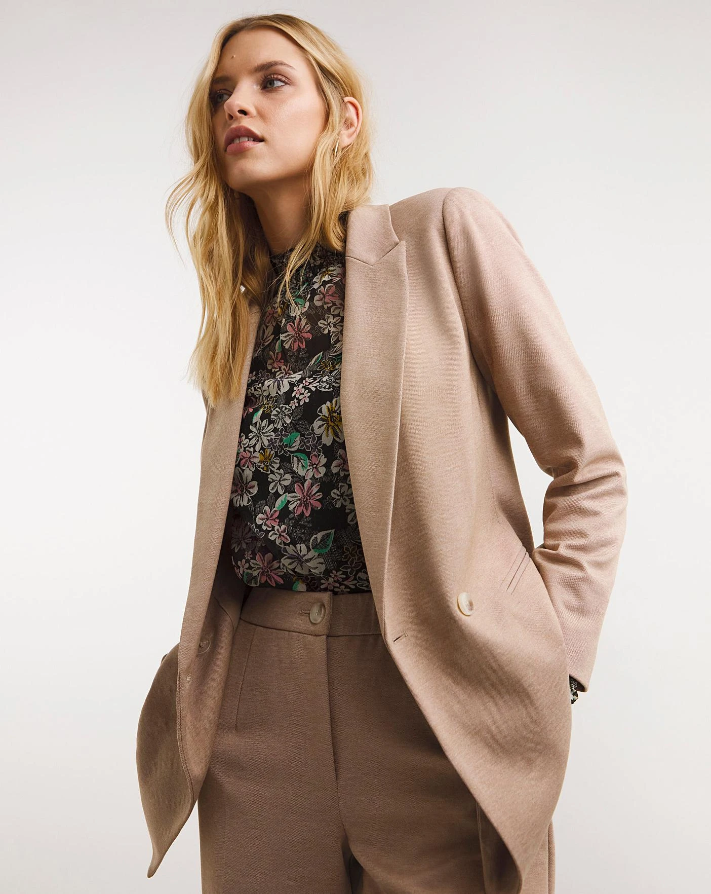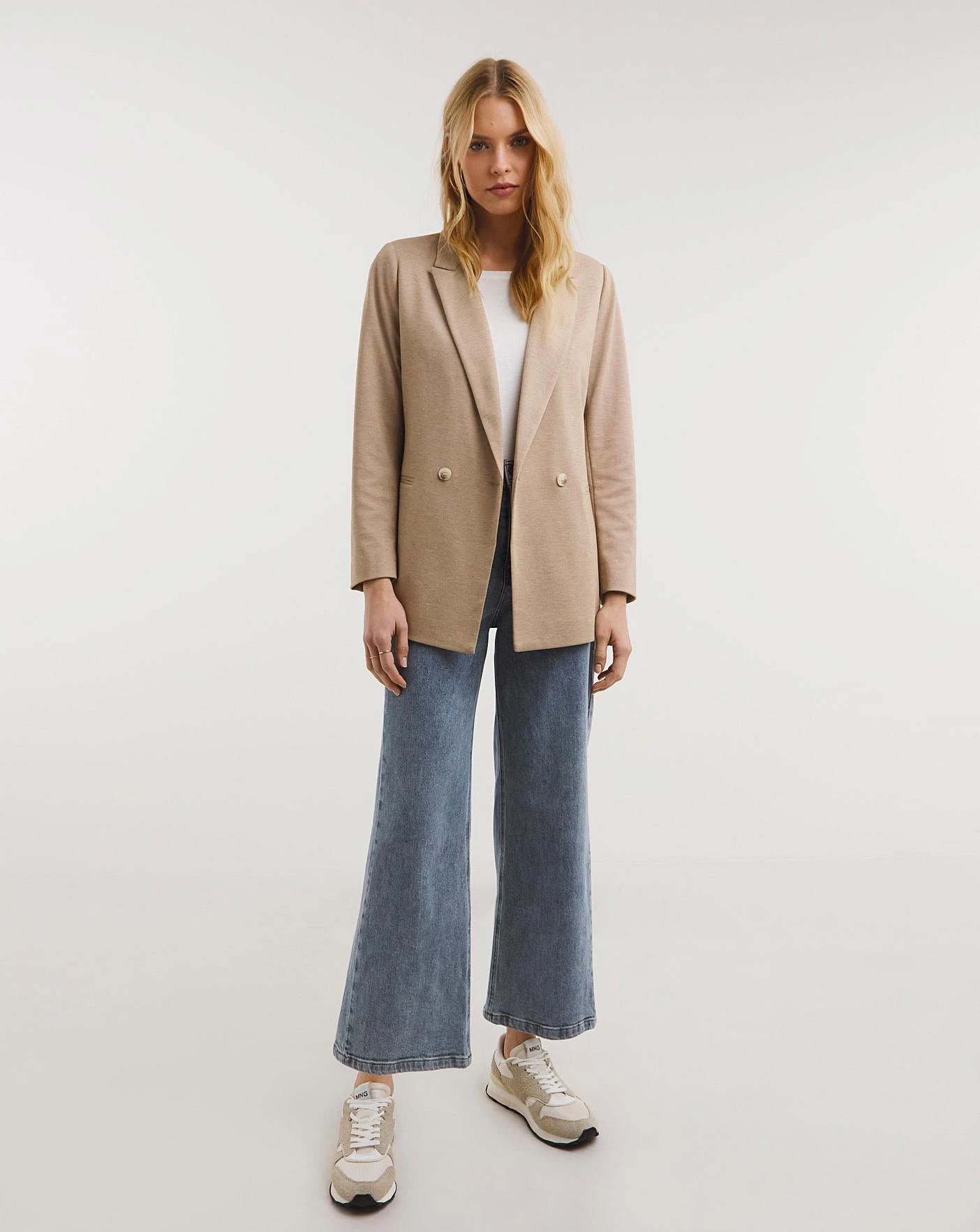 Crafted in an oatmeal coloured ponte fabrication, this blazer is the perfect layering piece to wear from season to season. The double breasted blazer features mock horn buttons. Pair with our matching Oatmeal wide leg Ponte trouser or as a versatile, throw-on separate for the new season.