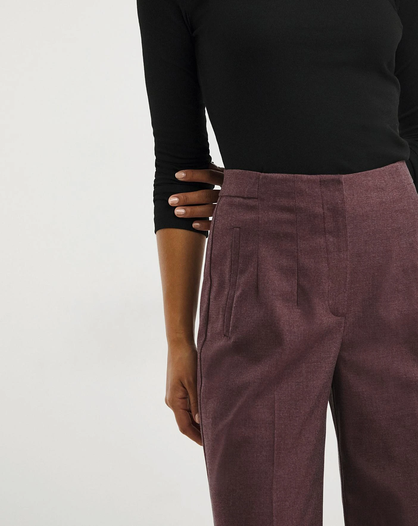 Crafted in a mid stretch Plum Marl fabrication that responds to and moves with your curves, these Grown on Waist Wide Leg Trousers add an effortless tailored touch to any outfit. Complete with a centre front zip fastening, side pockets for practicality, a smart press fold at the front and shaping darts to flattering shape the waist for a seamless finish. Pair back with the Plum Marl Waistcoat and Blazer for a tonal, contemporary three piece suit to take you from desk to dinner.