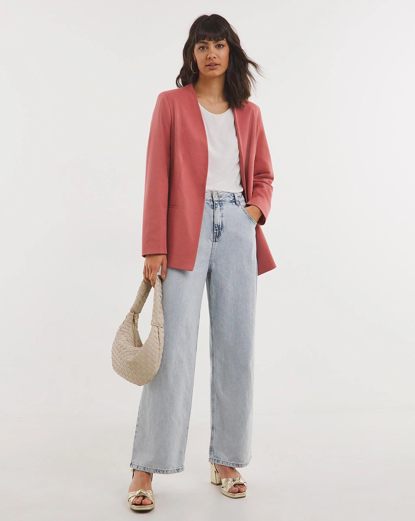 Cut to a elegant, collarless silhouette, this edge to edge blazer embraces day-to-night tailoring this season. This Rose blazer features front jett pockets, seaming details to flatteringly shape the waist and is fully lined for additional comfort and structure. Pair back with the matching straight leg trousers for a tonal head to toe look or wear as a versatile separate back with your new season wardrobe.