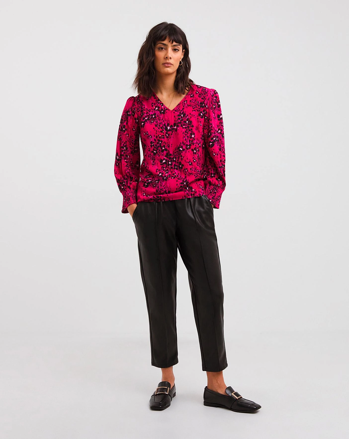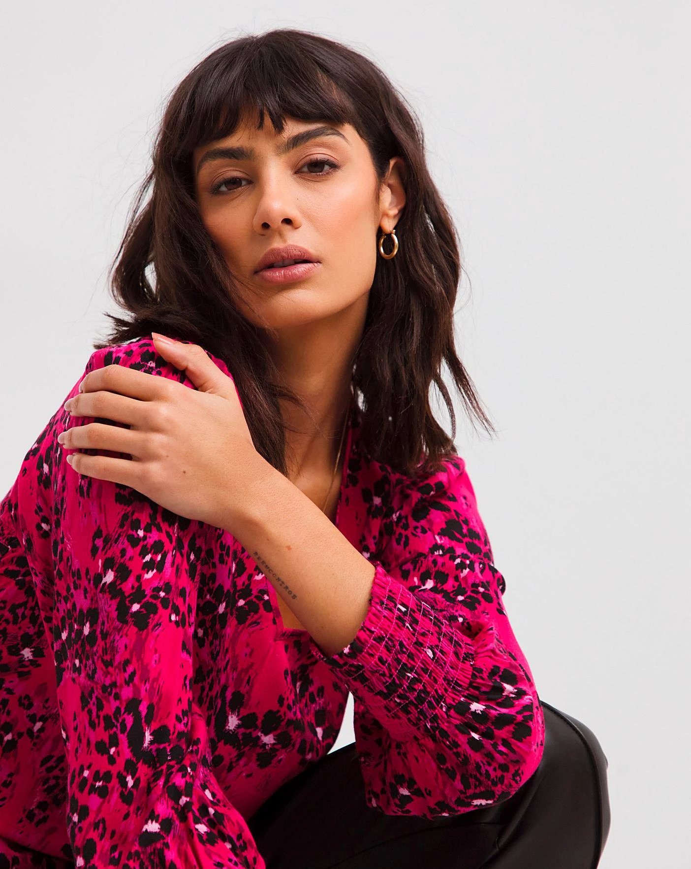 Complete your day time look with our smocked bodice top. In a flattering on trend print, this top can be paired easily with jeans or leather trousers. This top comes in a relaxed fit, so we would recommend sticking to your usual size.