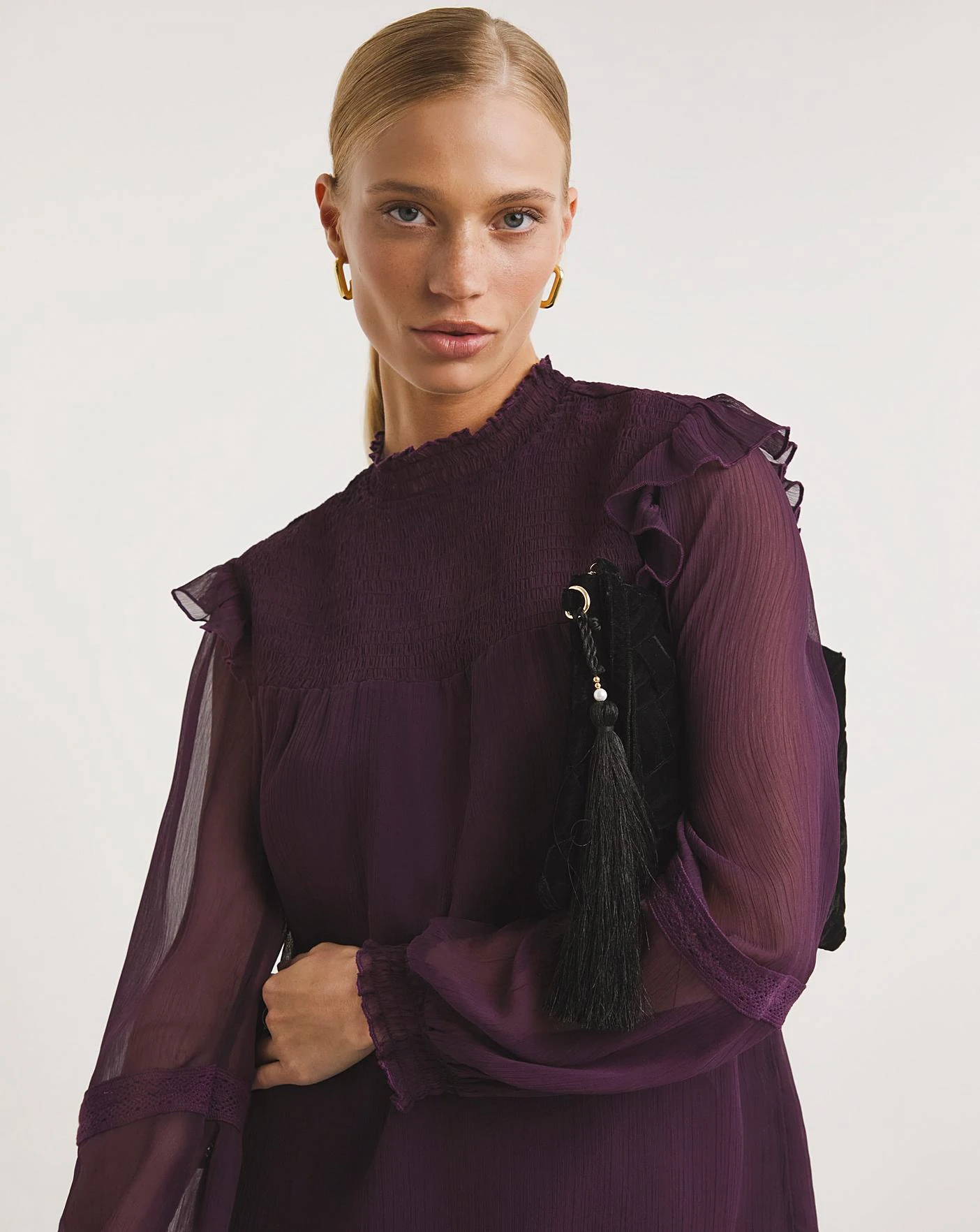 For the perfect seasonal look, choose our shirred yoke top with lace insert detailing. This top can be easily paired with jeans or leather pants, transforming your daytime look into the evening. Please note that this top comes in a relaxed fit and is made of a non-stretch polyester.