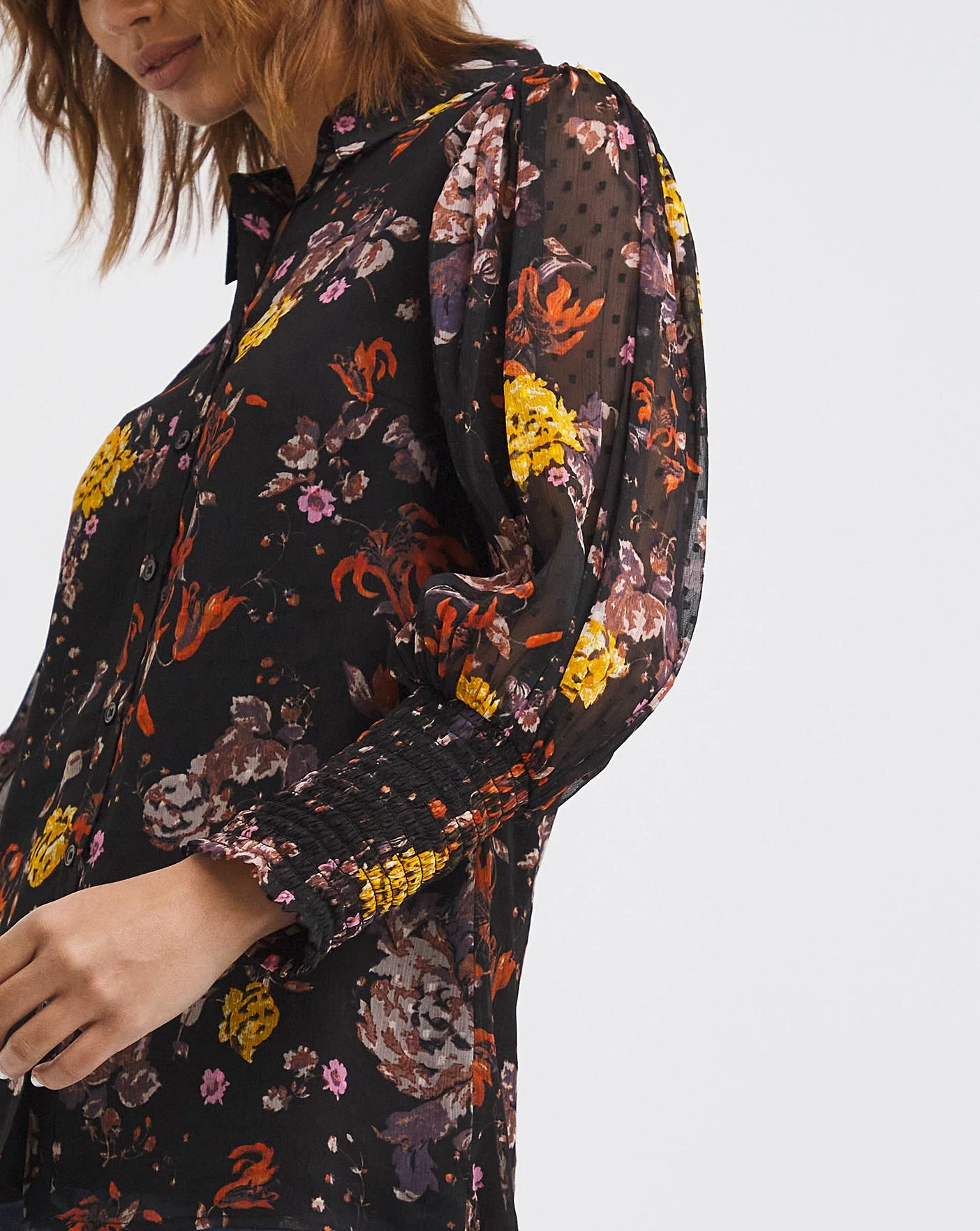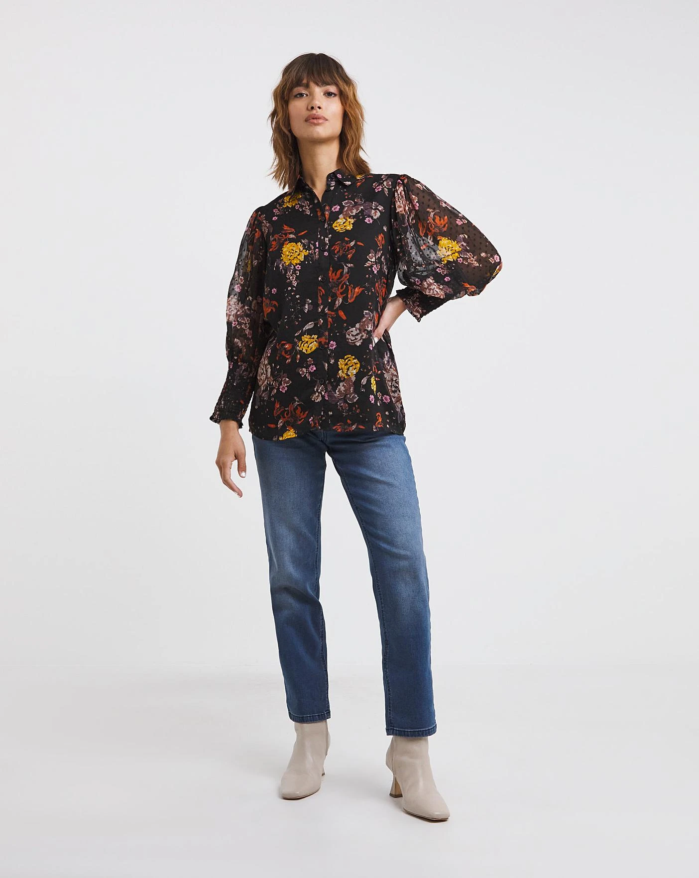 This shirt is a great day time piece, featuring flattering shirred cuffs. Pair this shirt easily with jeans for a casual look, and complete the look with some seasonal boots. Please note that this top comes in a relaxed fit, meaning that you can stick to your usual size.