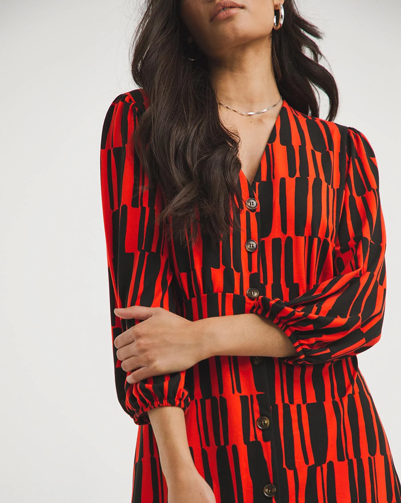 You will love the super soft feel of our best-selling Soft Touch Jersey fabric, consciously sourced from re-cycled materials. Featuring three quarter length sleeves and an elegant v-neckline. Designed in a flattering tea shape this easy versatile dress is a customer favourite and will be your go to throw on, perfect for everyday styling.