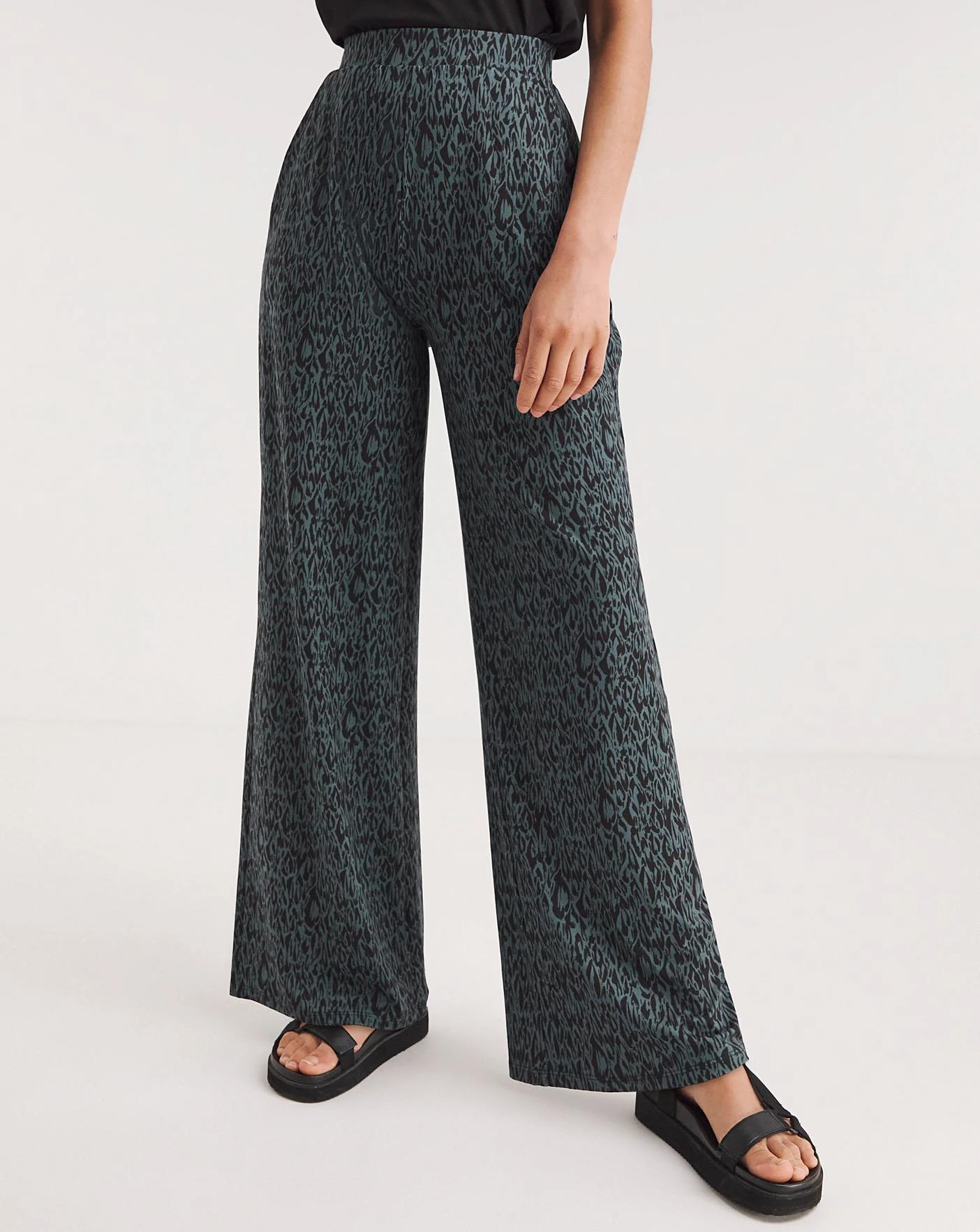 In a new animal print, our soft touch jersey trousers are an ultimate comfort piece. In our flattering stretch jersey fabric, this easy-to-wear pull-on style is the perfect throw on trouser!