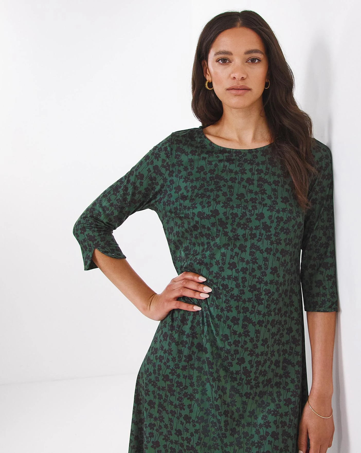 Our bestselling swing shape has had a revamp for the season. Now in a premium soft touch jersey fabrication, the quality is both softer and weightier. Featuring 3/4 sleeves, a round crew neck, and in a floaty swing shape. At our short length and in a regular fit, we suggest taking your normal size. Also available in blue floral.
