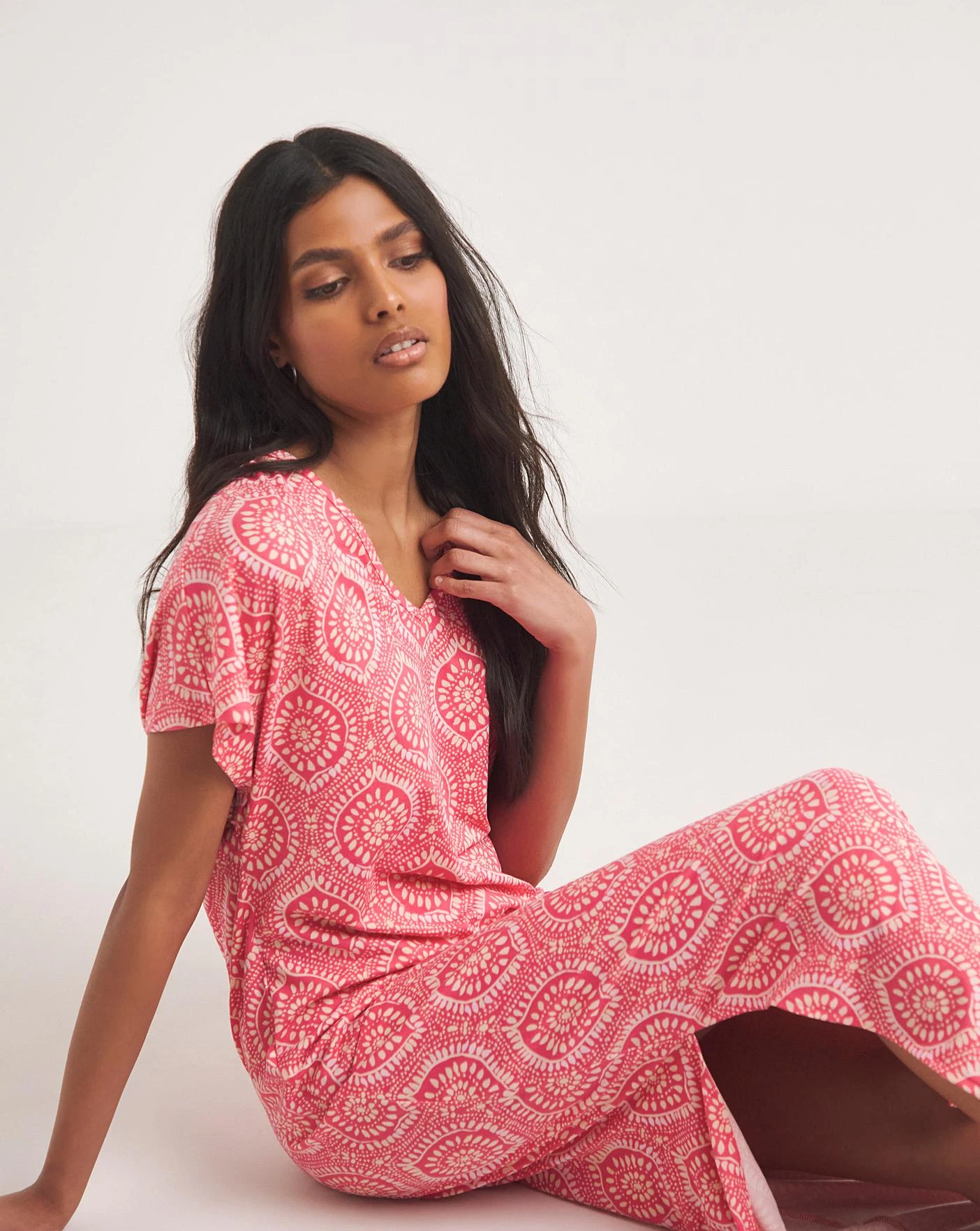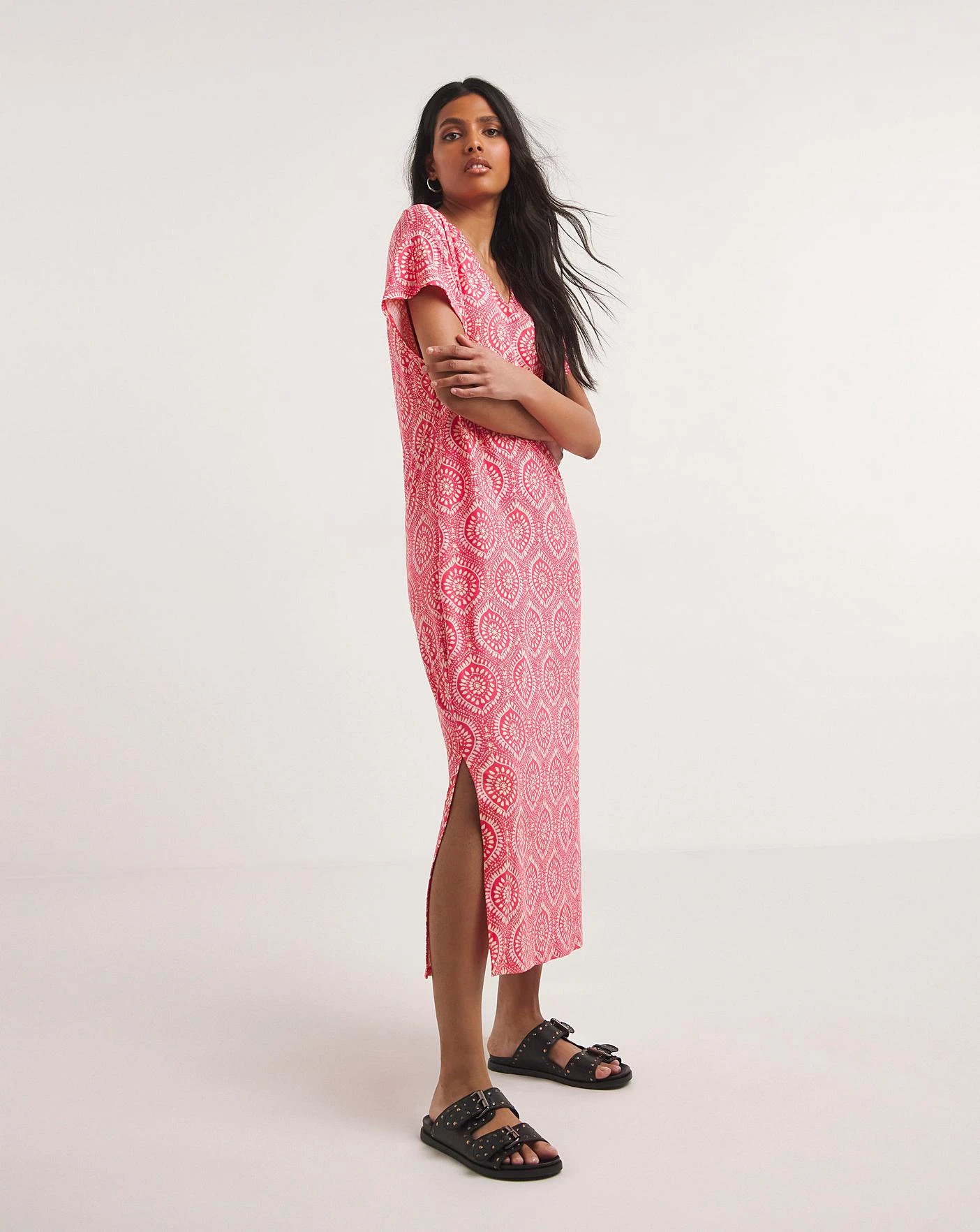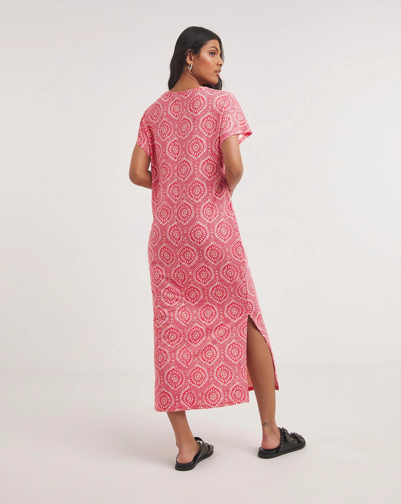 Made from a sustainable soft touch fabric, this comfy T-shirt dress features a round neckline, short sleeves and slide slit detailing. In our midi length, relaxed fit, this dress is perfect for summer days.