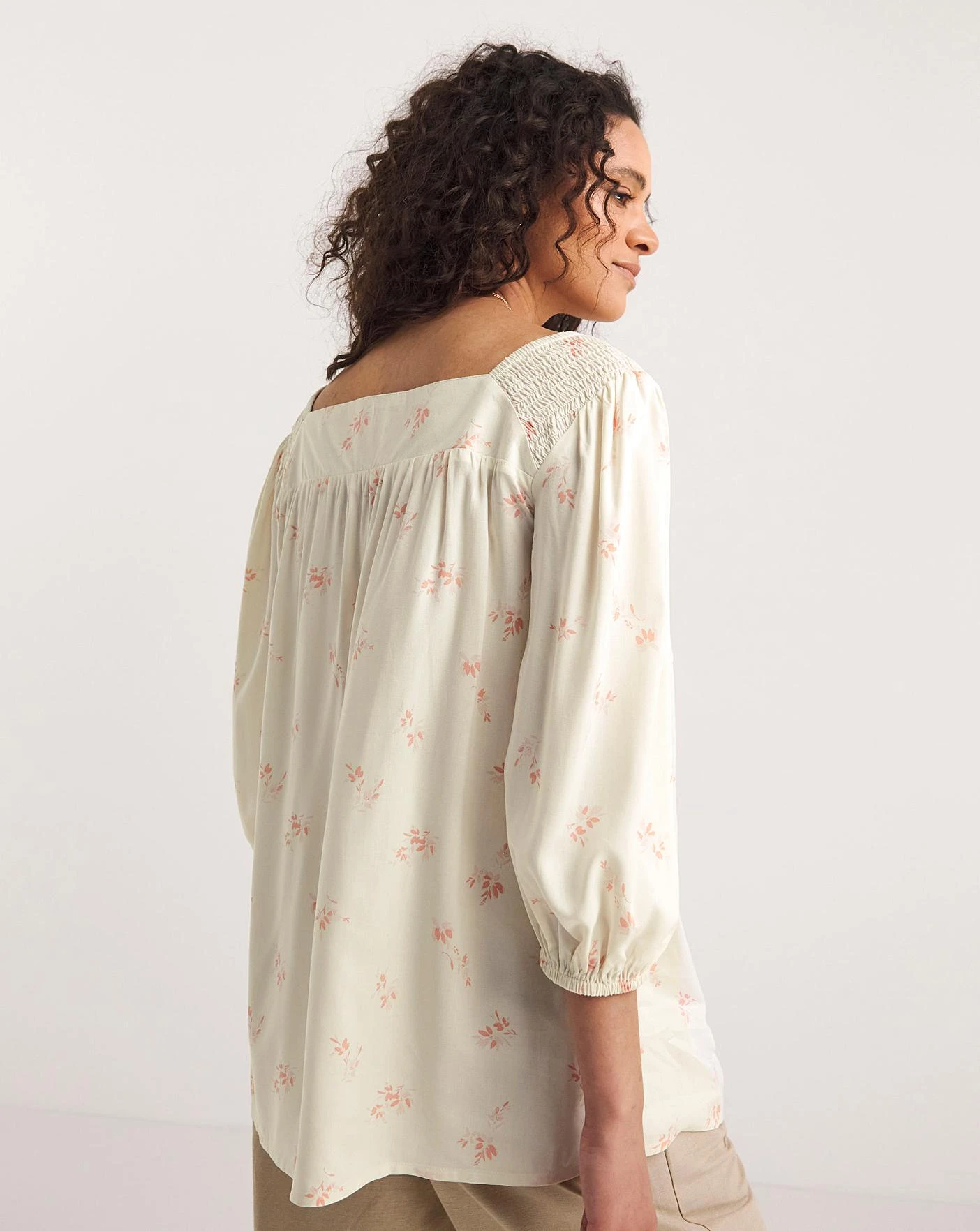 Our square neck top is a great day time piece that can be paired easily with jeans or shorts. Please note that this top comes in a relaxed fit and is made of a non-stretch fabric.
