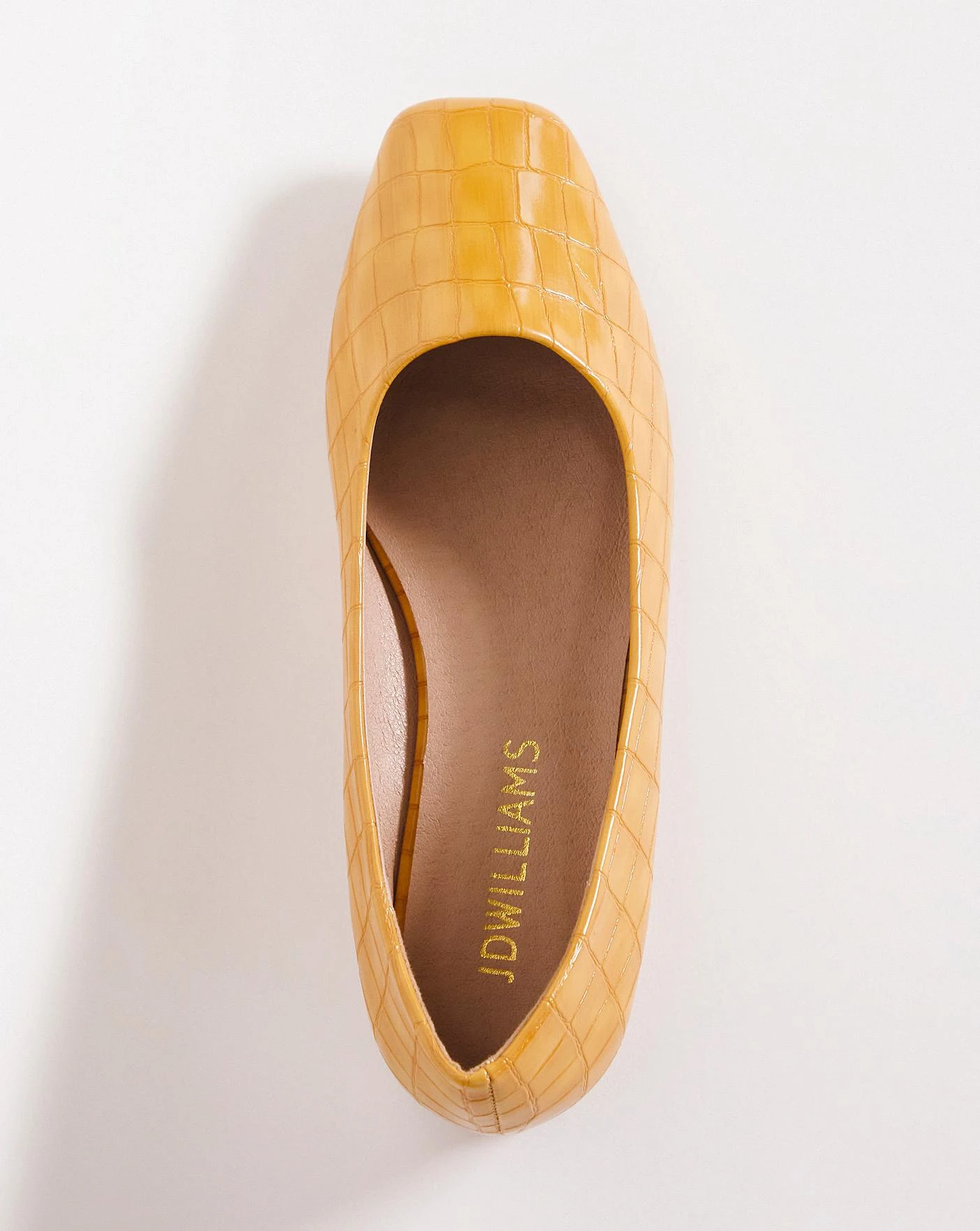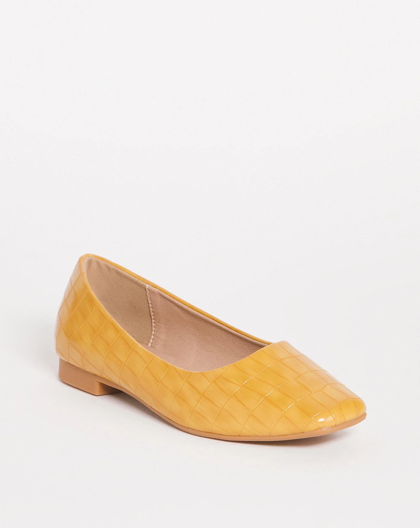 A contemporary update to the ballerina, our square toe croc pattern shoe is perfect for casual office days.