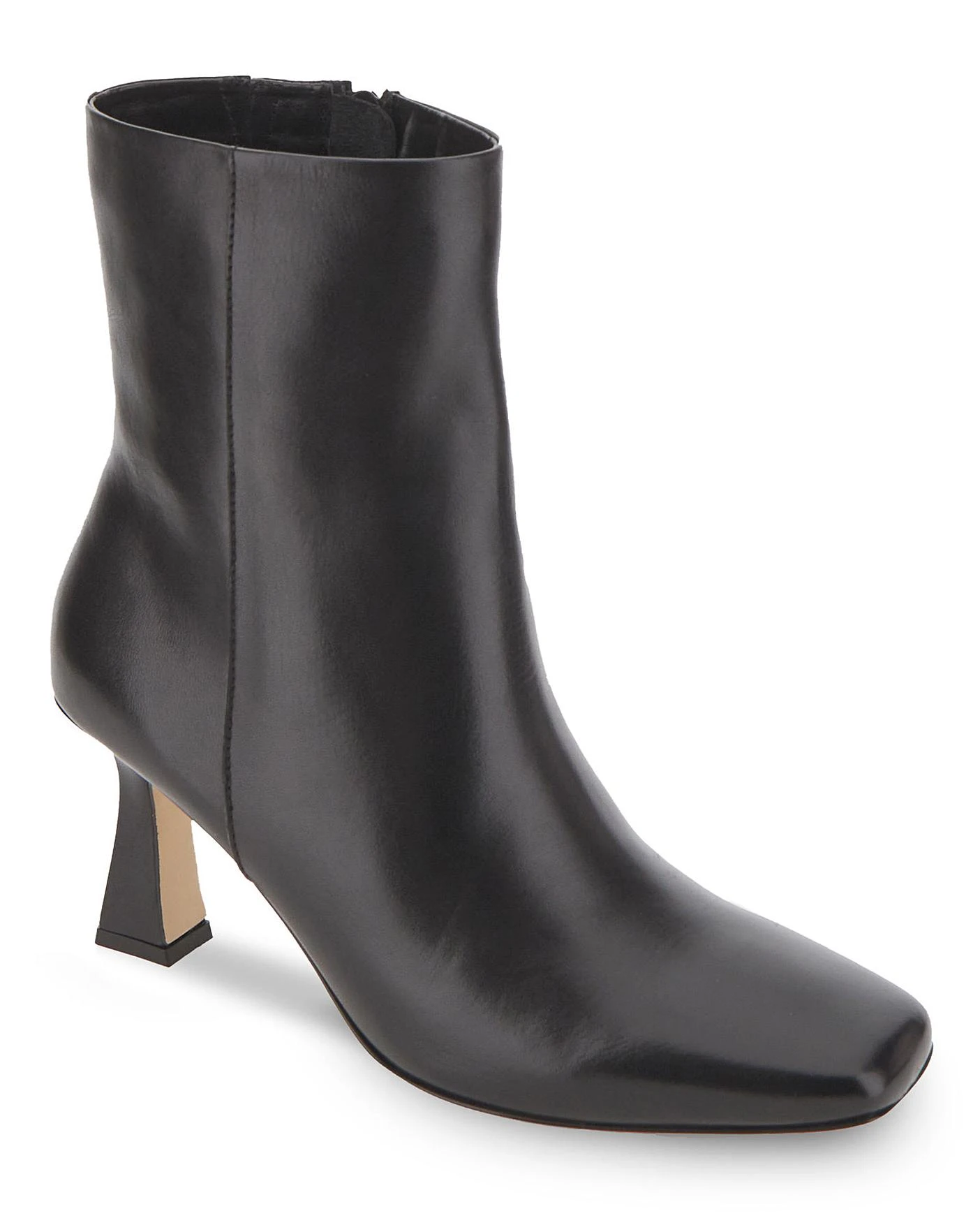 A contemporary style with stylish details this square toe boot is crafted in premium leather and finished with a subtle flared heel. Wear with straight leg jeans or a midi dress for a modern look.