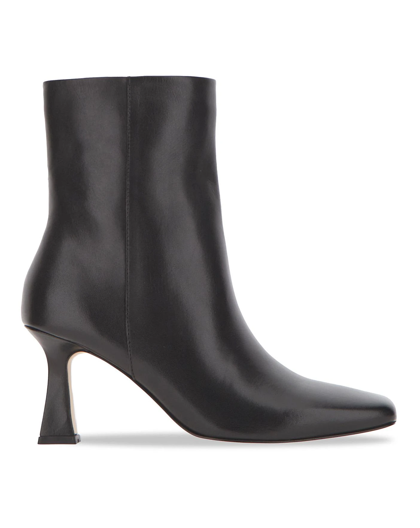 A contemporary style with stylish details this square toe boot is crafted in premium leather and finished with a subtle flared heel. Wear with straight leg jeans or a midi dress for a modern look.