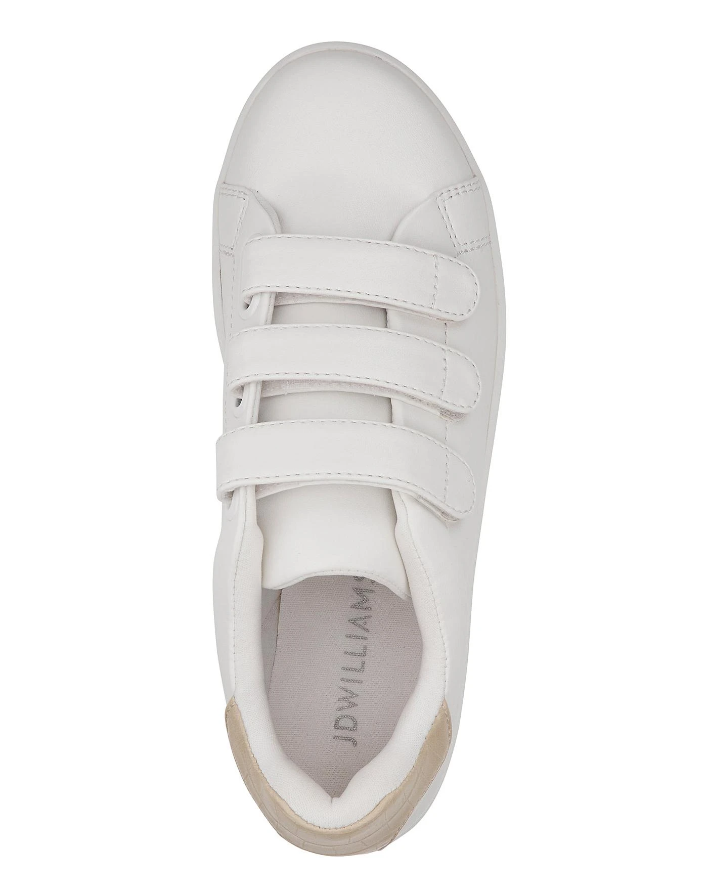 These simple touch and close leather look trainers feature three easy fasten straps for a comfortable fit, a contrast heel tab and matching leisure style sole. Wear with denim or loungewear for a relaxed look.